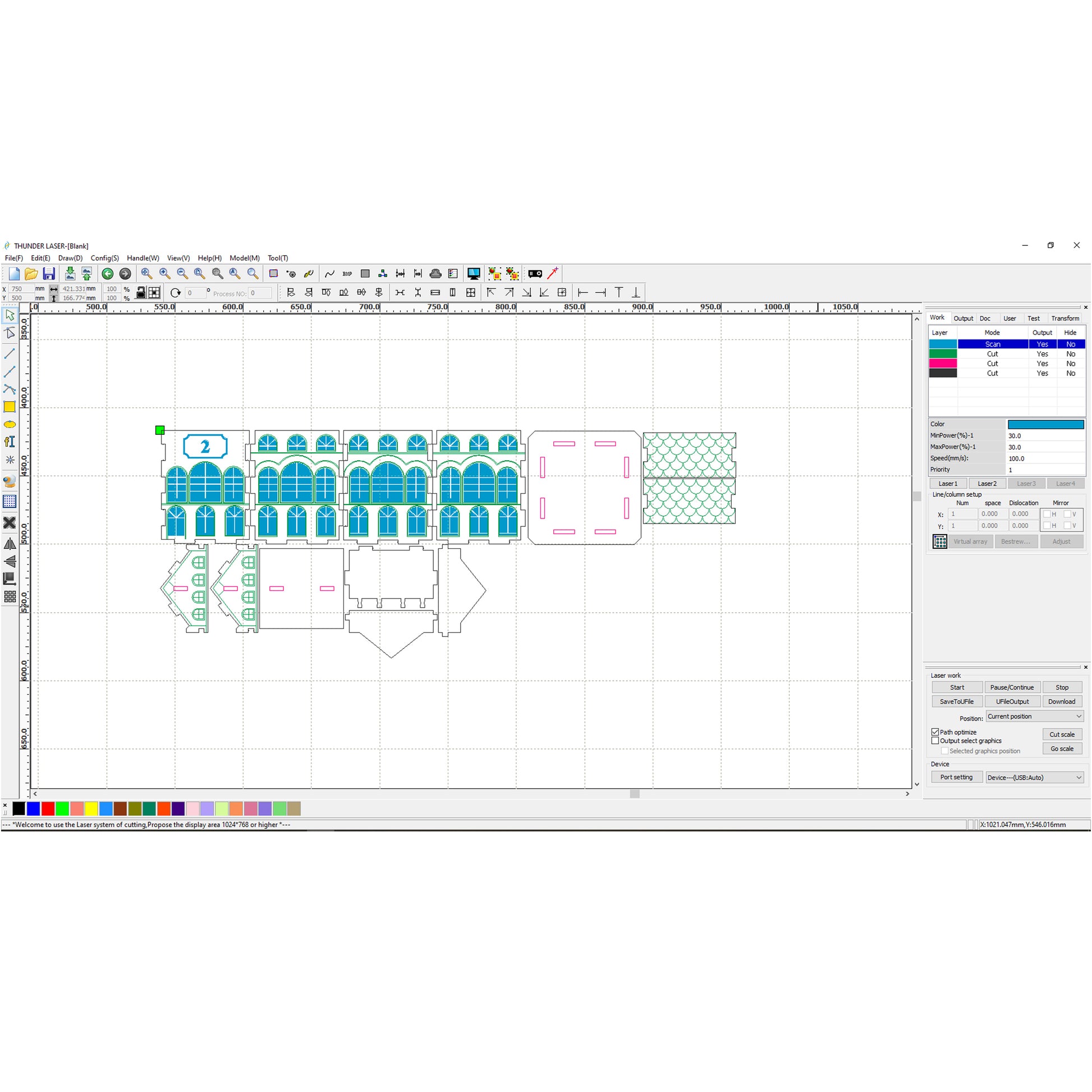 green color - score (cut mode with low power and high speed)