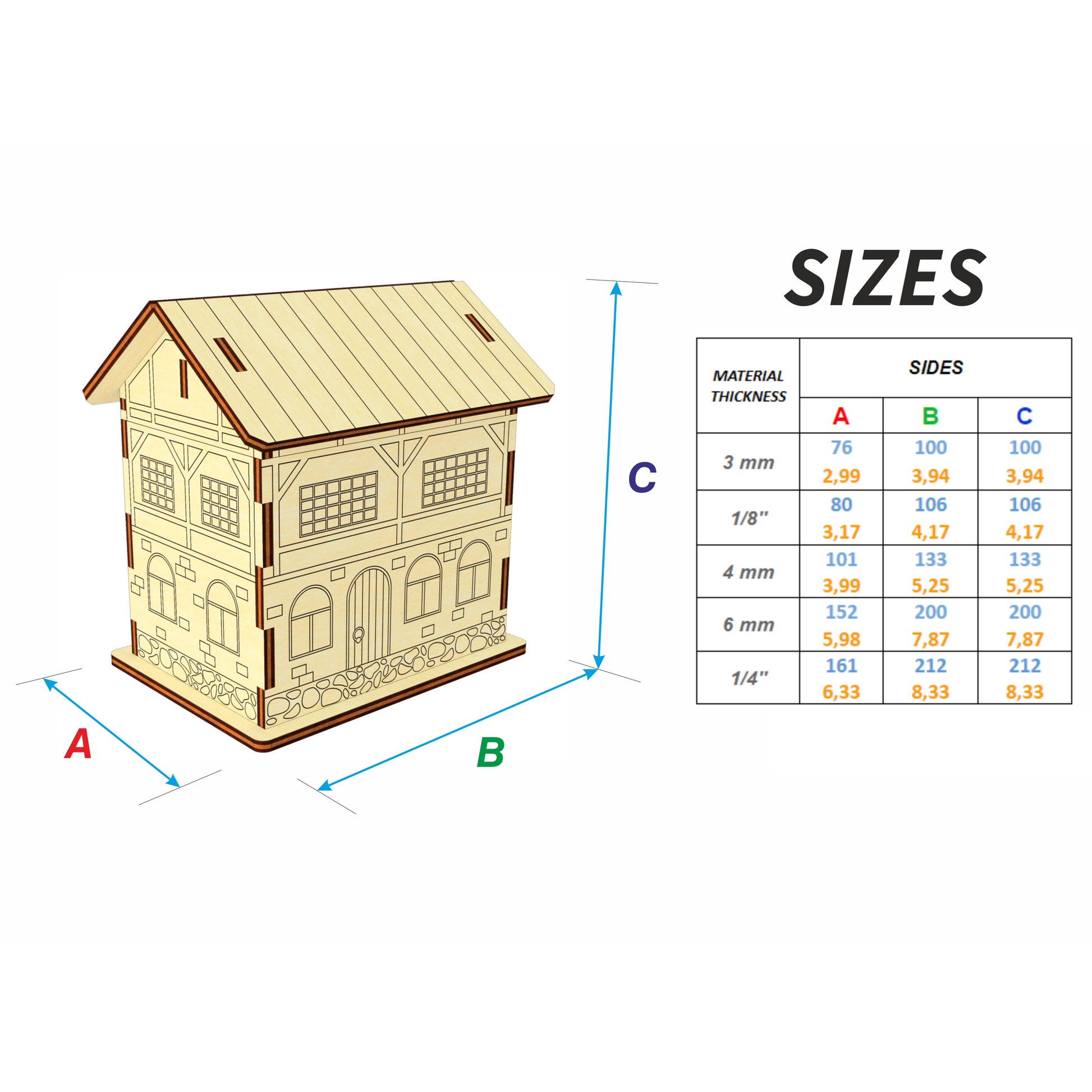 🤏Material thickness (versions of the files): 3mm, 1/8''(3.175mm), 4mm, 6mm, 1/4''(6.35mm)