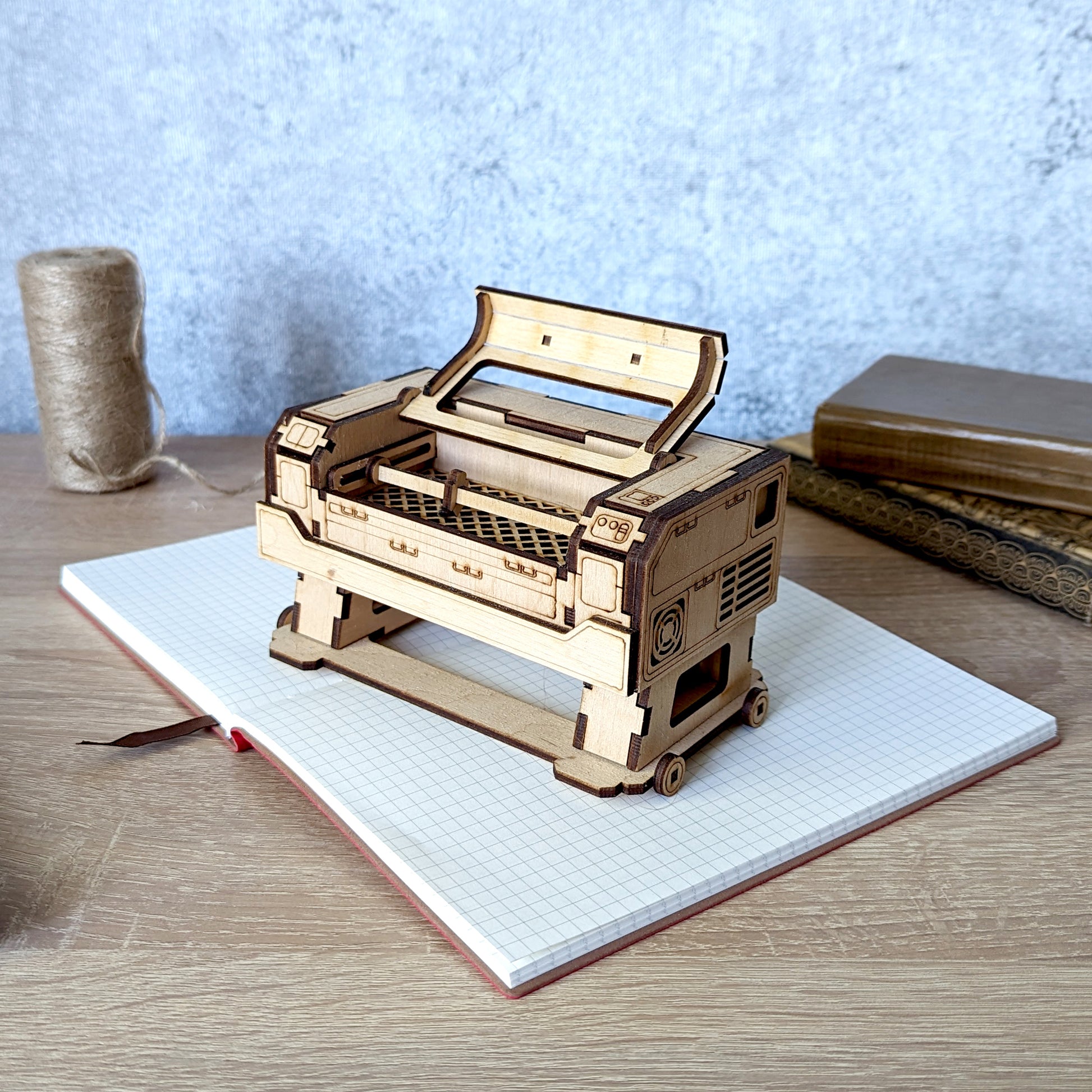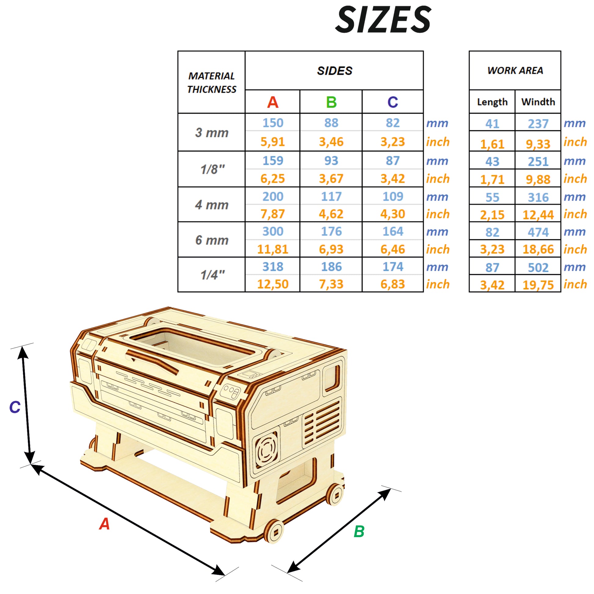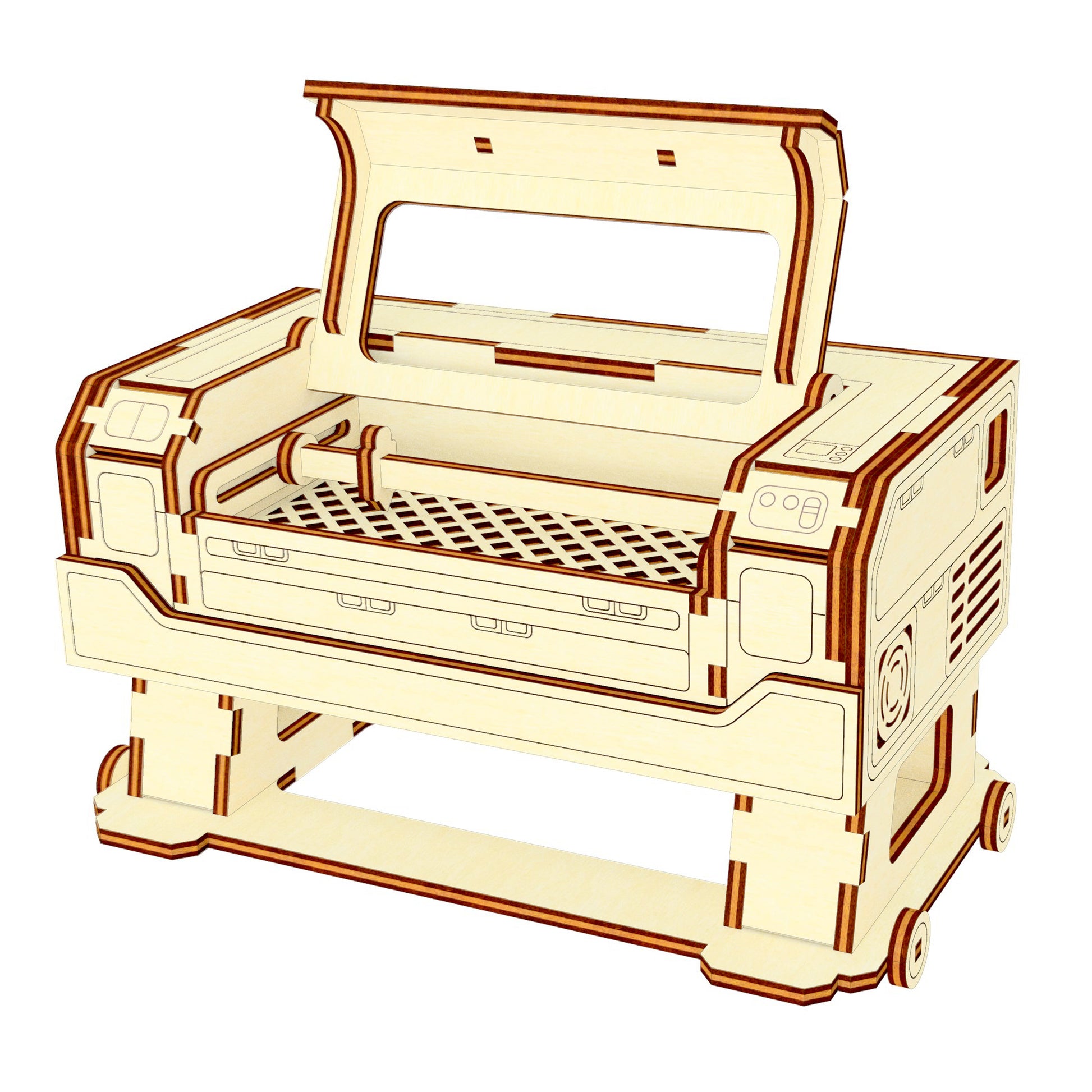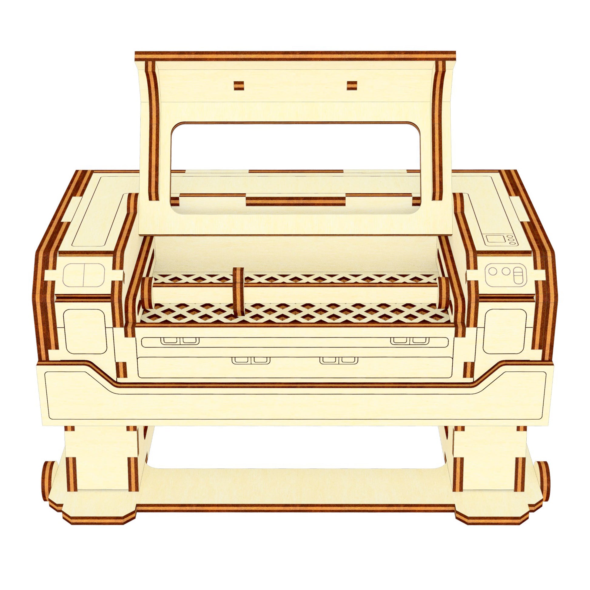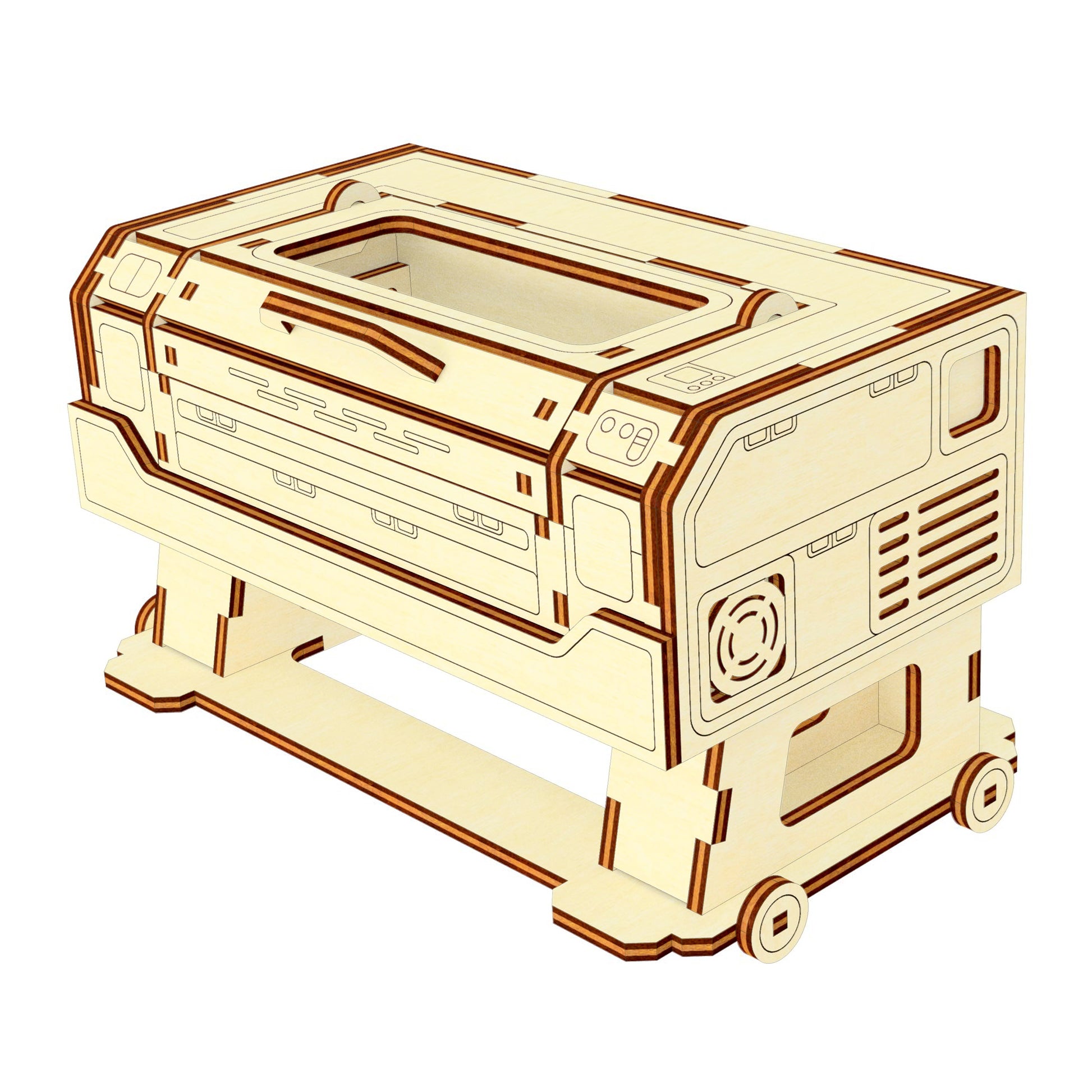 Introducing our laser cut machine design - a ready-made project for a miniature laser machine with realistic features, including a movable laser head mechanism, grid view workspace, and detailed exterior drawing complete with cooler, dashboard, and locks. With a set of vector files and easy-to-follow instructions included, this digital product is perfect for DIY enthusiasts and hobbyists looking to create a stunning and functional miniature laser machine.