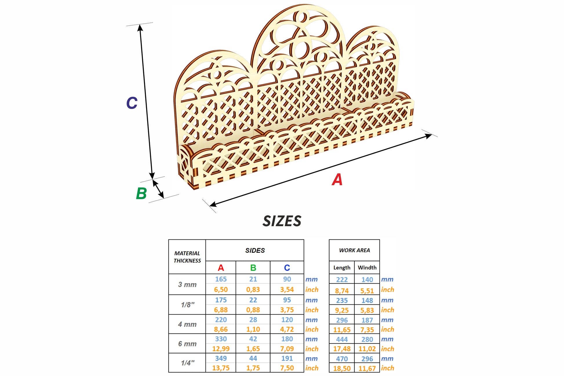 🤏Material thickness (versions of the files): 3mm, 1/8''(3.175mm), 4mm, 6mm, 1/4''(6.35mm)