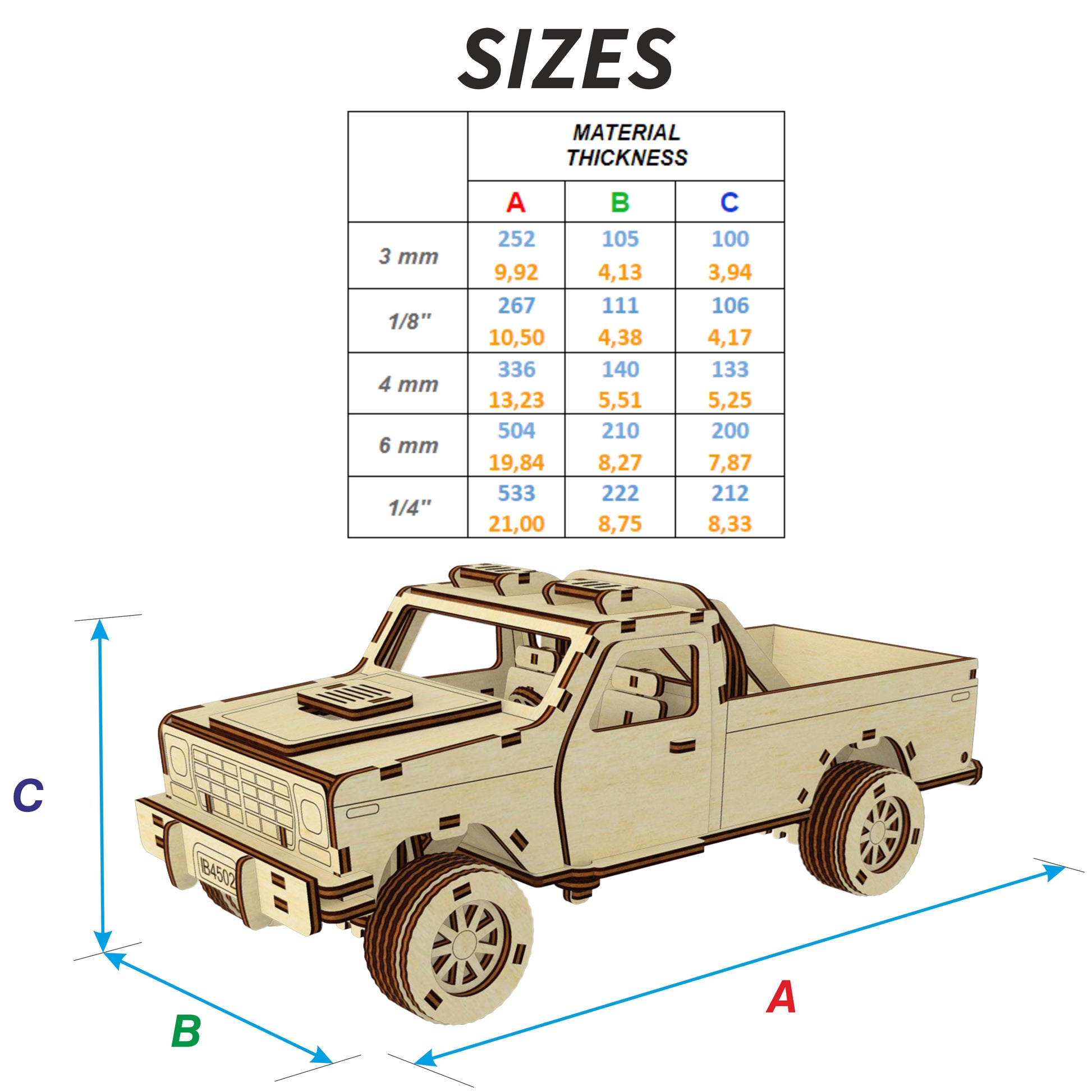 🤏Material thickness (versions of the files): 3mm, 1/8''(3.175mm), 3.2 mm, 4mm, 6mm, 1/4''(6.35mm)