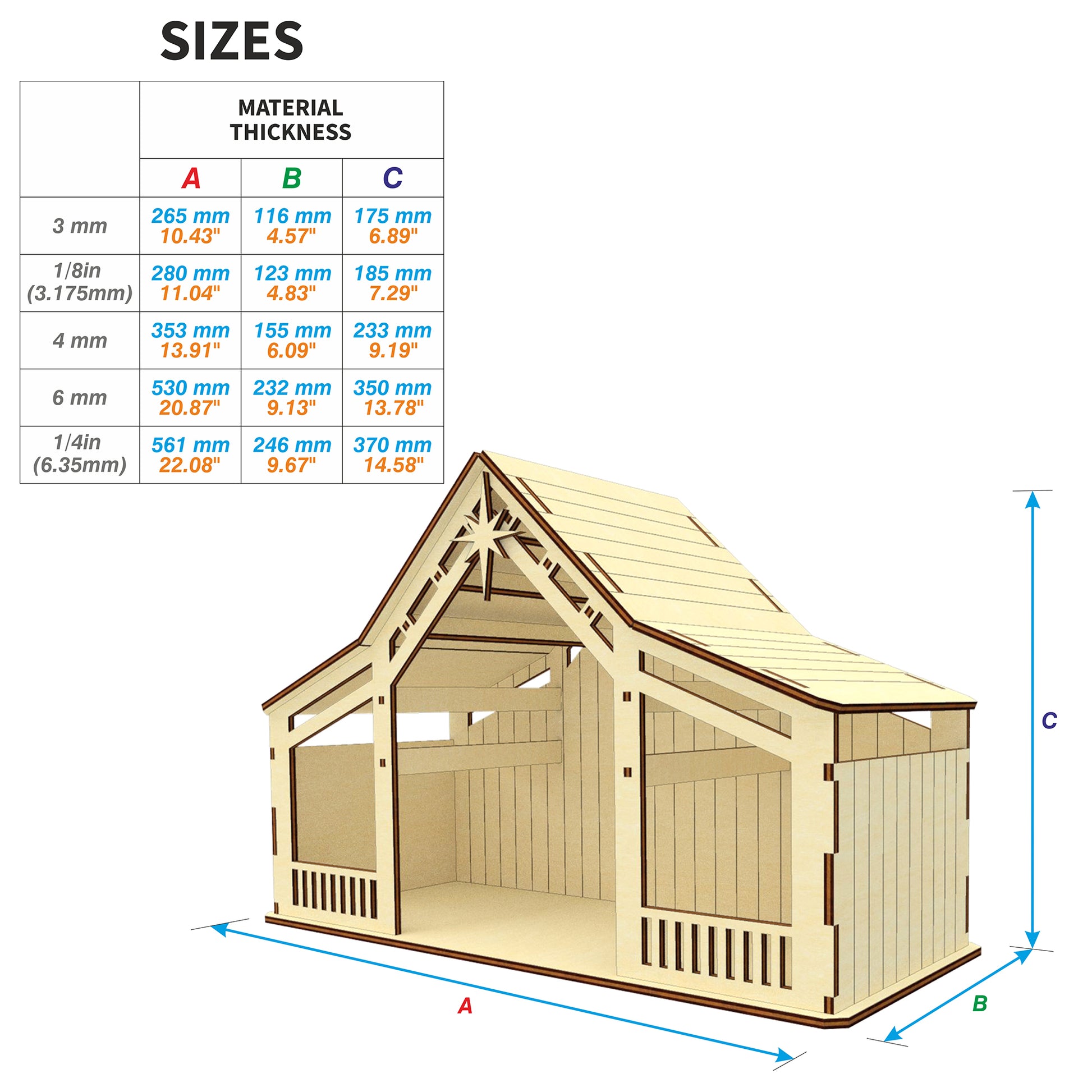 🤏Material thickness (versions of the files): 3mm, 1/8''(3.175mm), 4mm, 6mm, 1/4''(6.35mm)