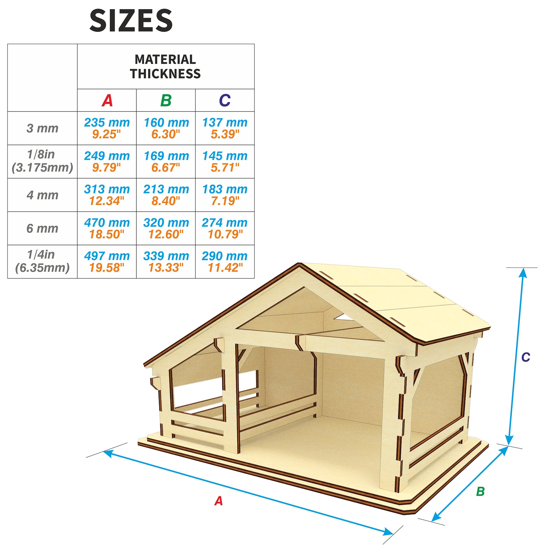 🤏Material thickness (versions of the files): 3mm, 1/8''(3.175mm), 4mm, 6mm, 1/4''(6.35mm)