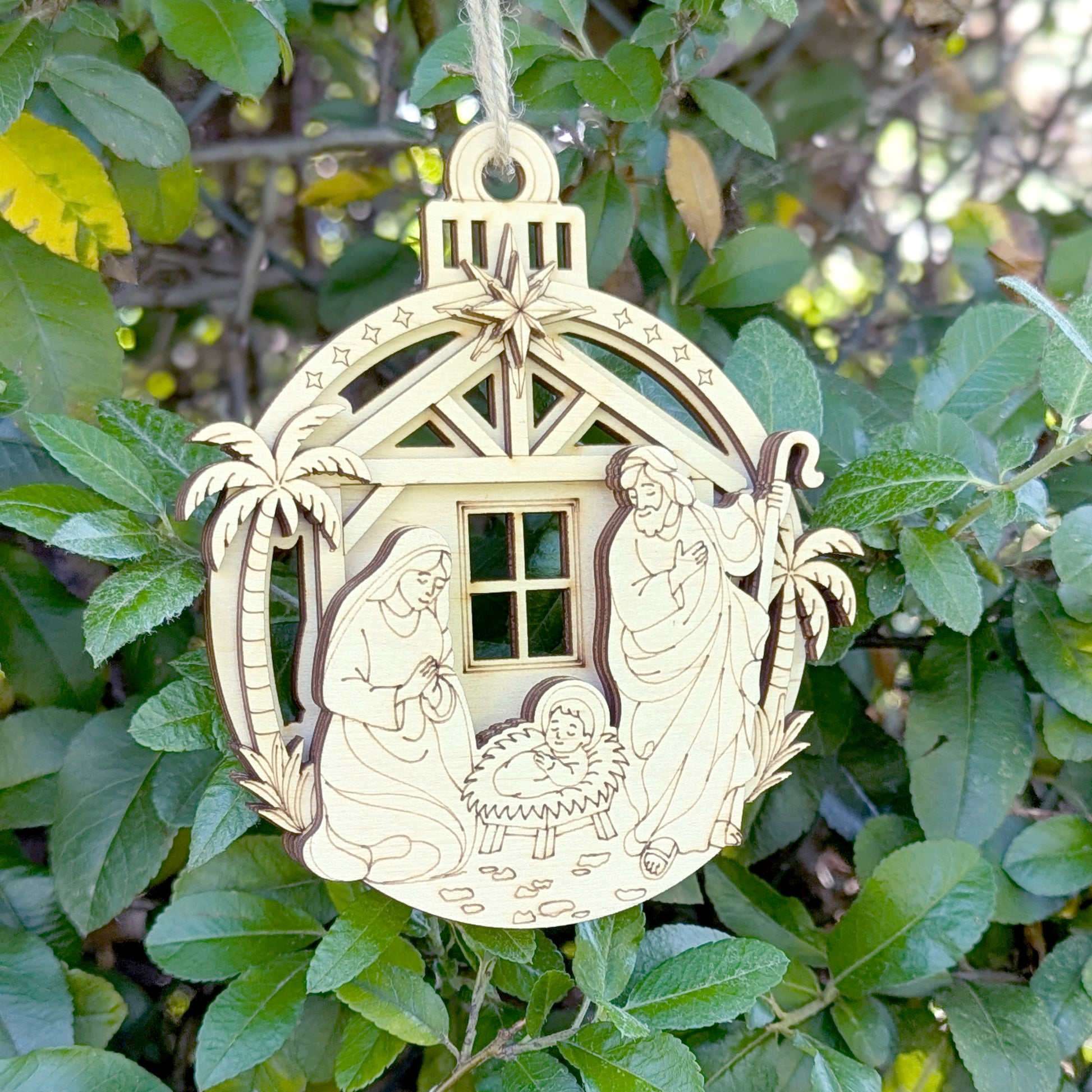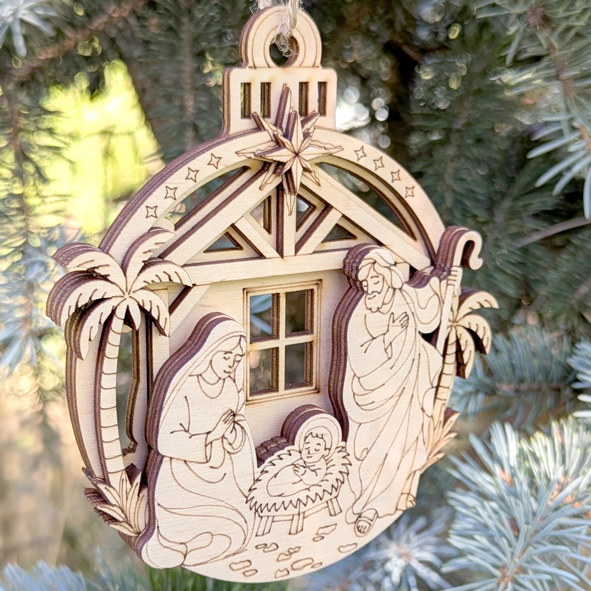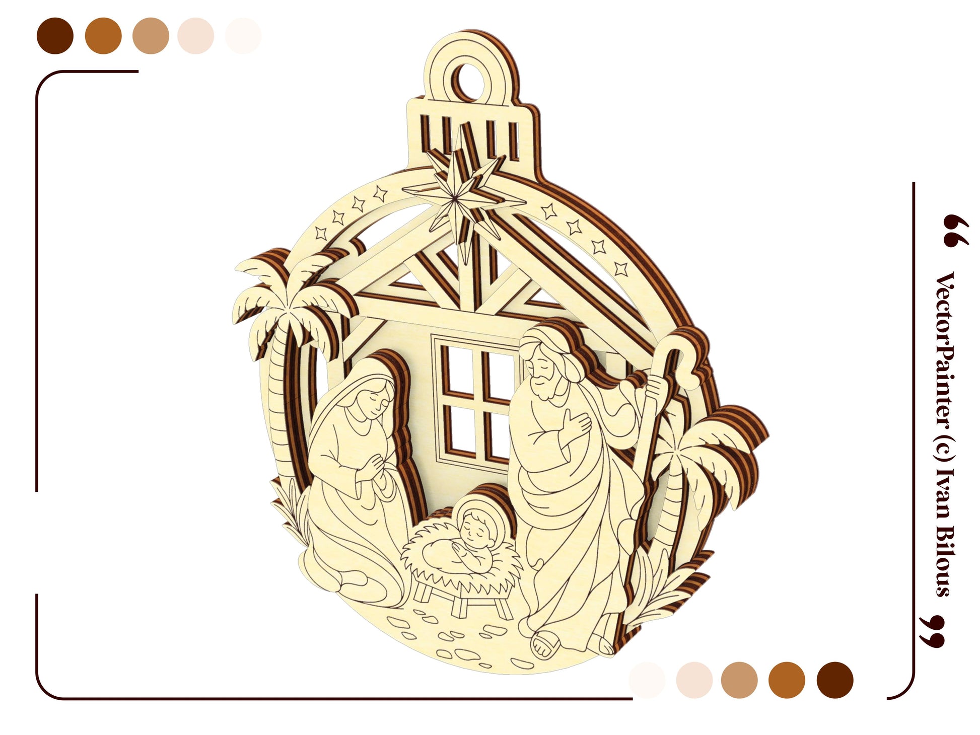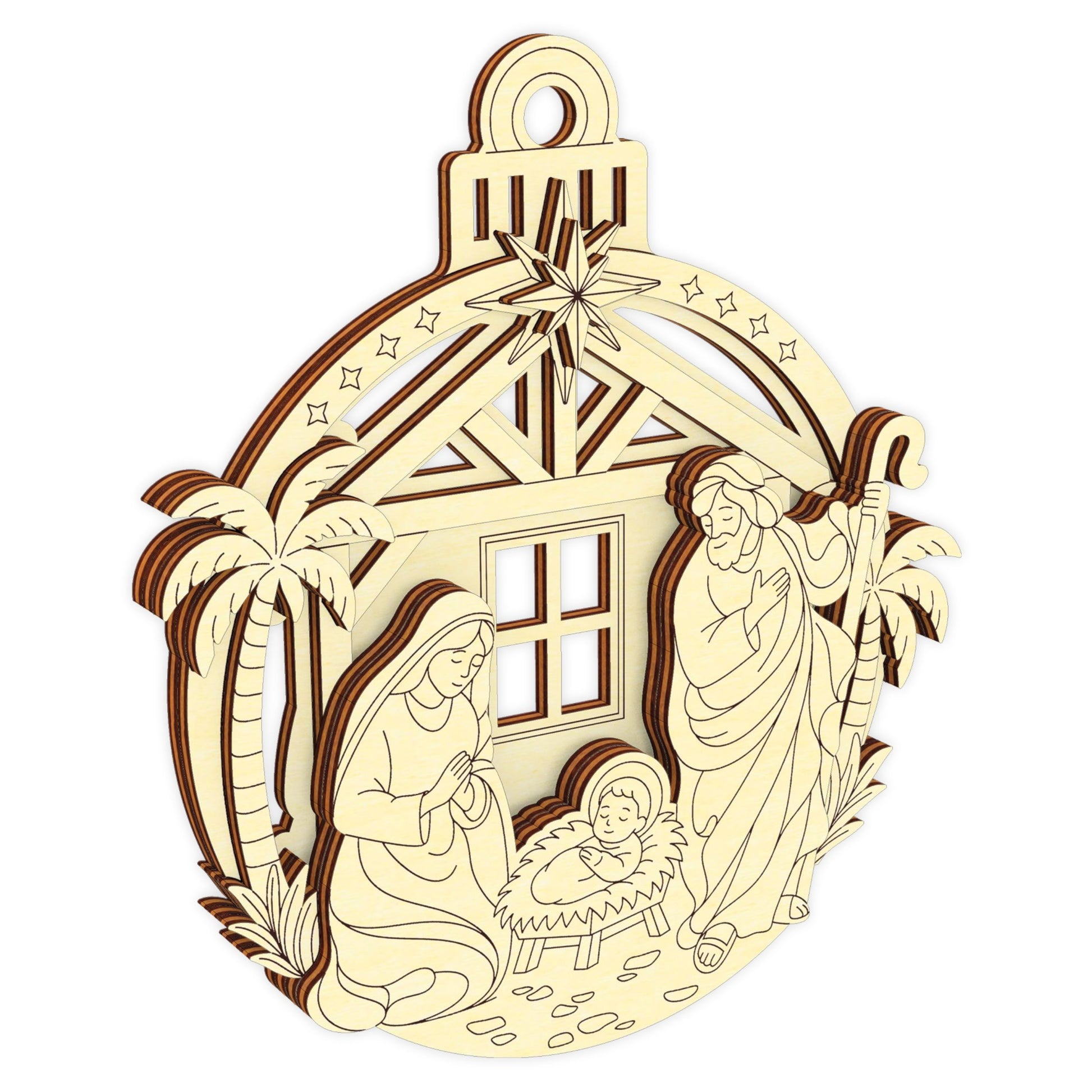 Celebrate the meaning of Christmas with this Nativity Ornament Laser Cut File – a beautifully detailed vector plan featuring Baby Jesus, Mary, and Joseph in the barn. Designed for cutting machines, this ornament brings a timeless, spiritual touch to your holiday decor, handmade gifts, or religious displays. The layered design is optimized for easy cutting and assembly using plywood, MDF, acrylic or just cardboard or paper, making it a perfect project for both beginners and experienced crafters.
