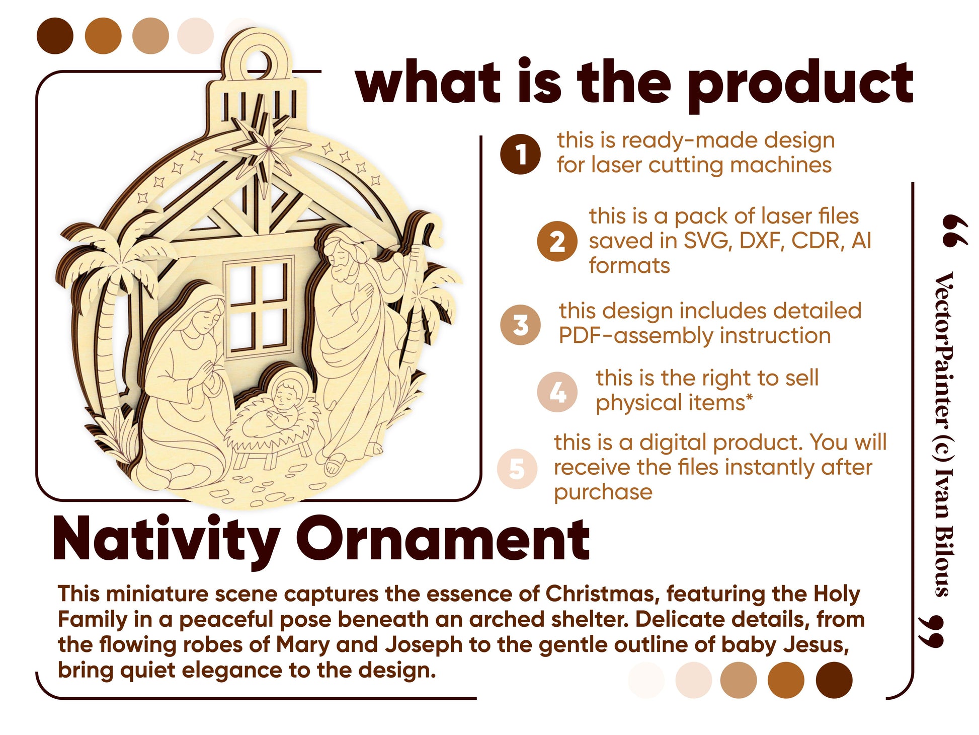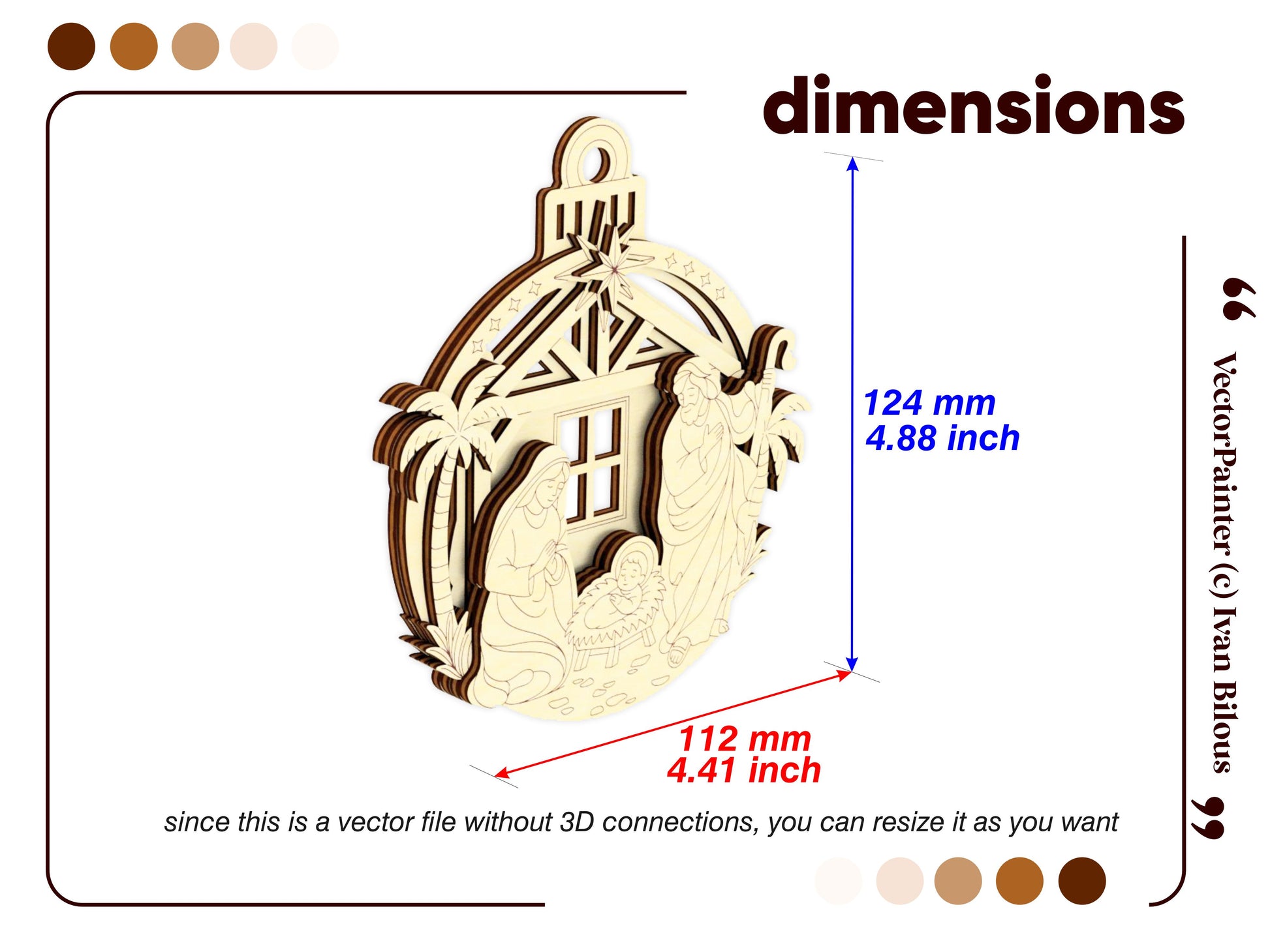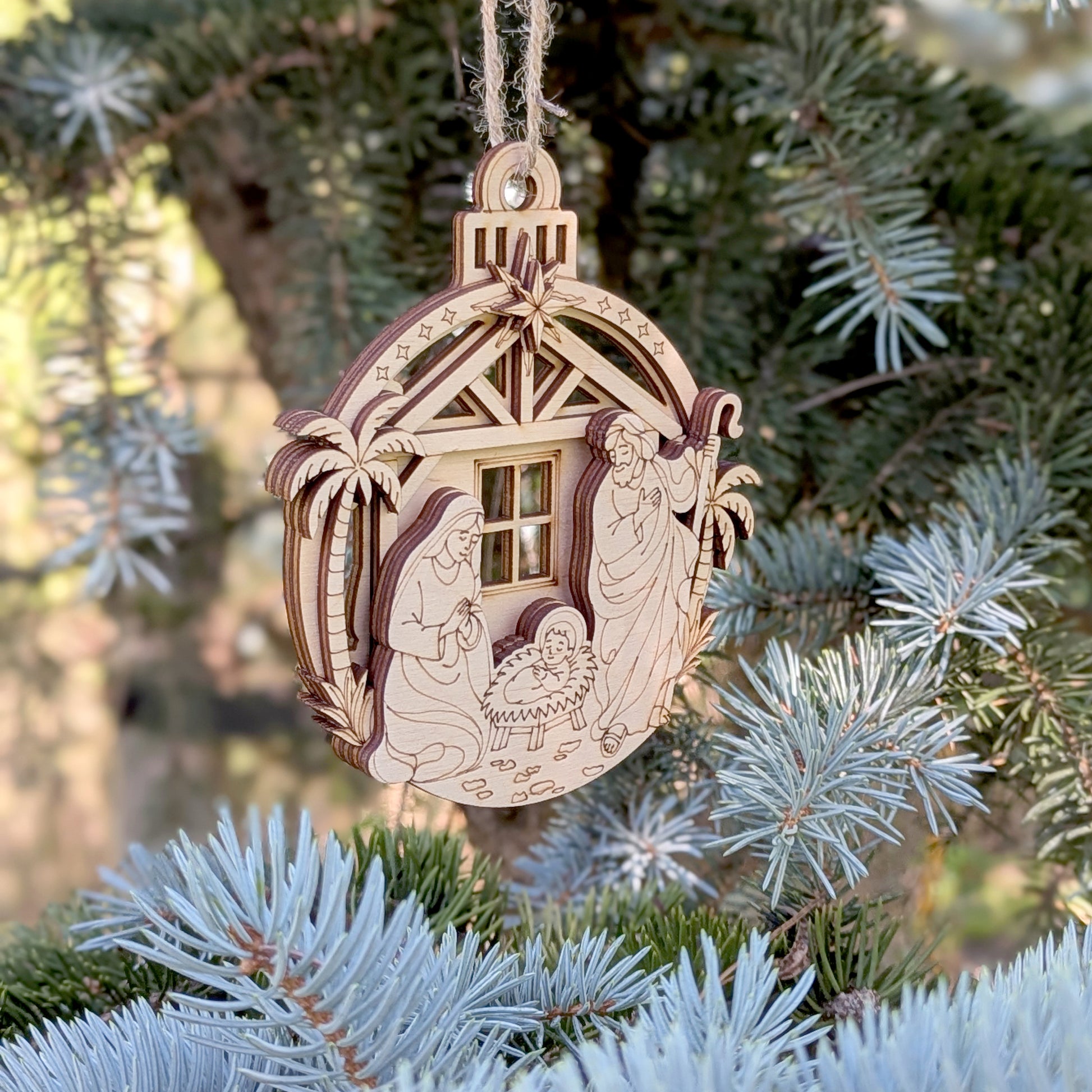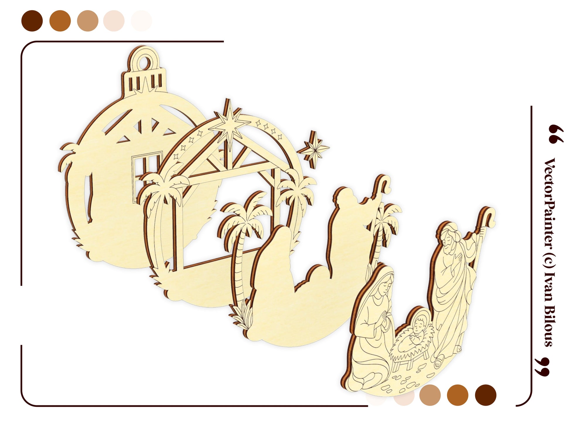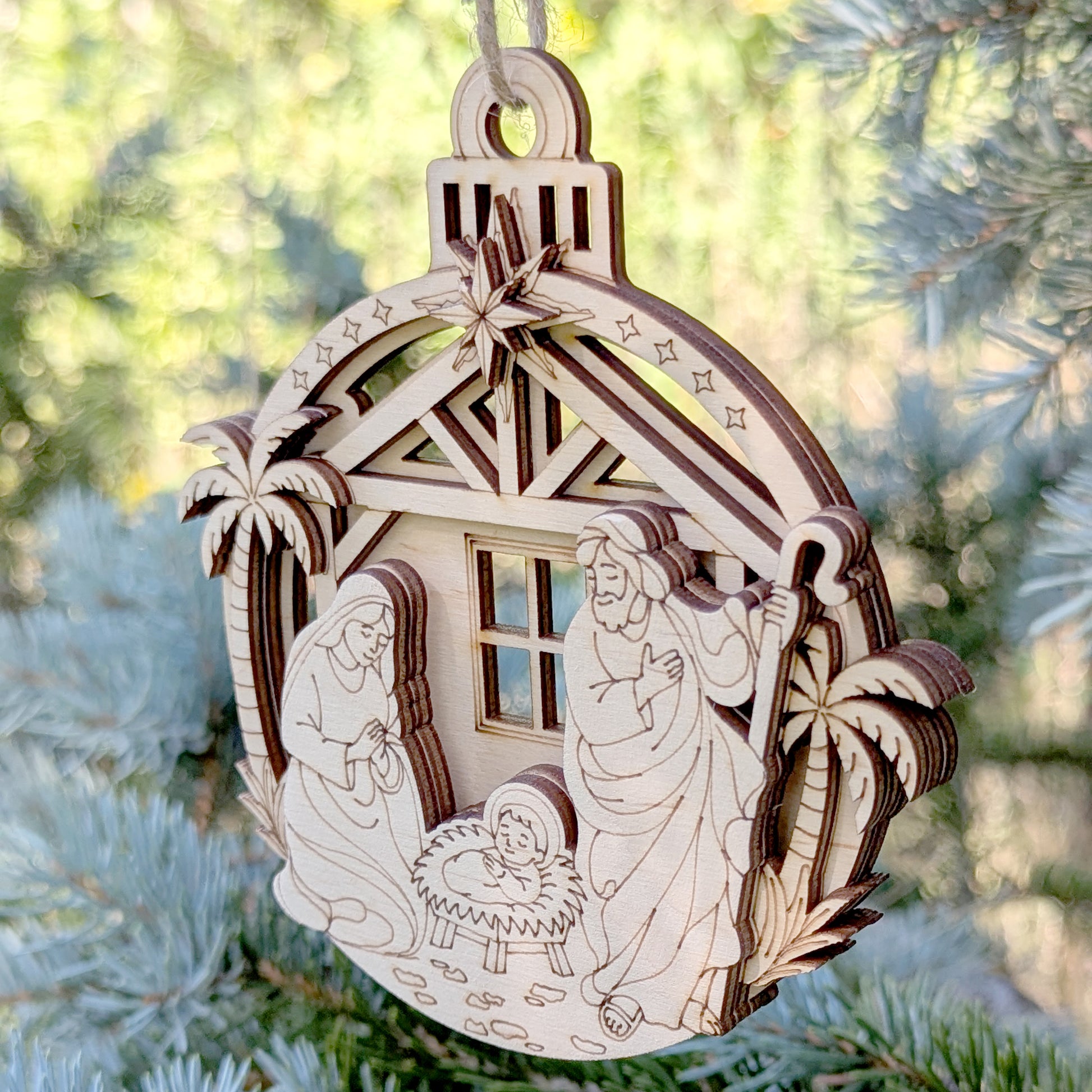 Celebrate the meaning of Christmas with this Nativity Ornament Laser Cut File – a beautifully detailed vector plan featuring Baby Jesus, Mary, and Joseph in the barn. Designed for cutting machines, this ornament brings a timeless, spiritual touch to your holiday decor, handmade gifts, or religious displays. The layered design is optimized for easy cutting and assembly using plywood, MDF, acrylic or just cardboard or paper, making it a perfect project for both beginners and experienced crafters.