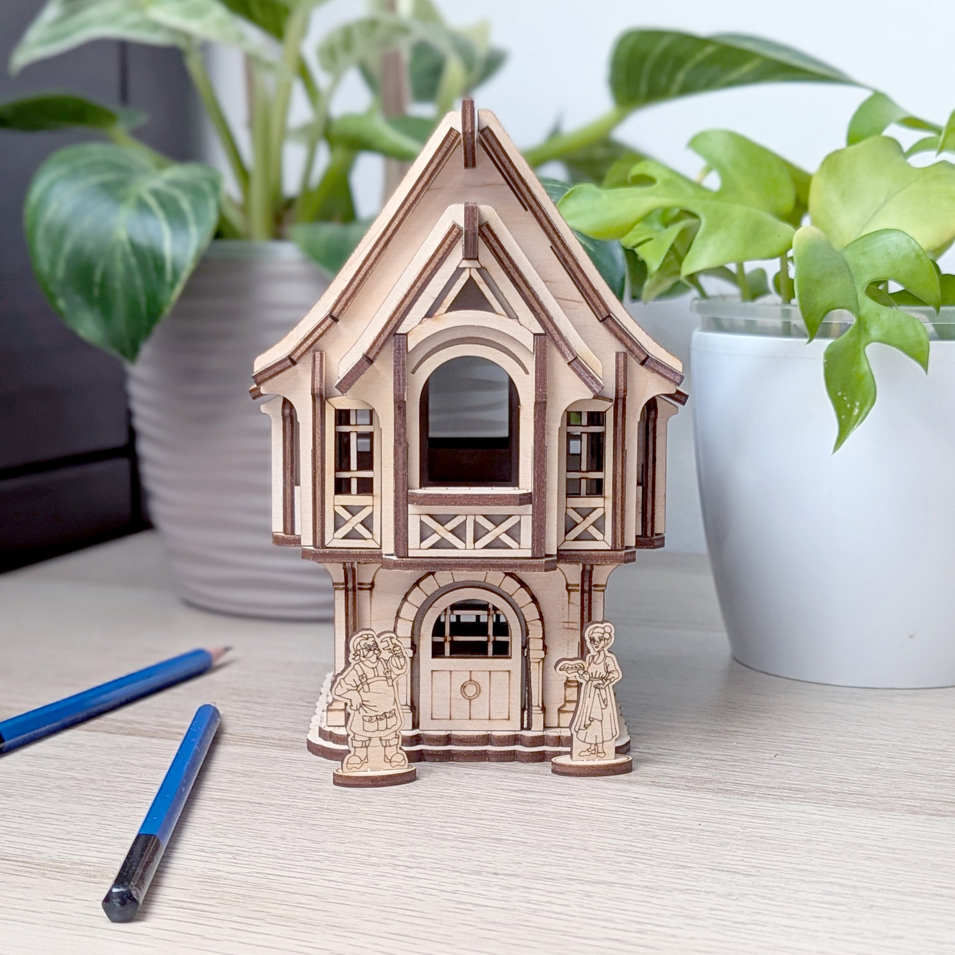 The Old Village House is a stunningly detailed laser-cut model that beautifully encapsulates the rustic charm and timeless character of traditional countryside architecture. With its layered wall textures, shuttered windows, and sloped roof, this miniature house evokes the warmth and nostalgia of a serene rural village. Perfect as a decorative piece, part of a diorama, or an enchanting addition to a village display, the Old Village House offers both visual appeal and interactive functionality. This meticulously designed project is compatible with a variety of machines and materials, featuring files in SVG, DXF, CDR, and AI formats, specifically created for seamless laser cutting.