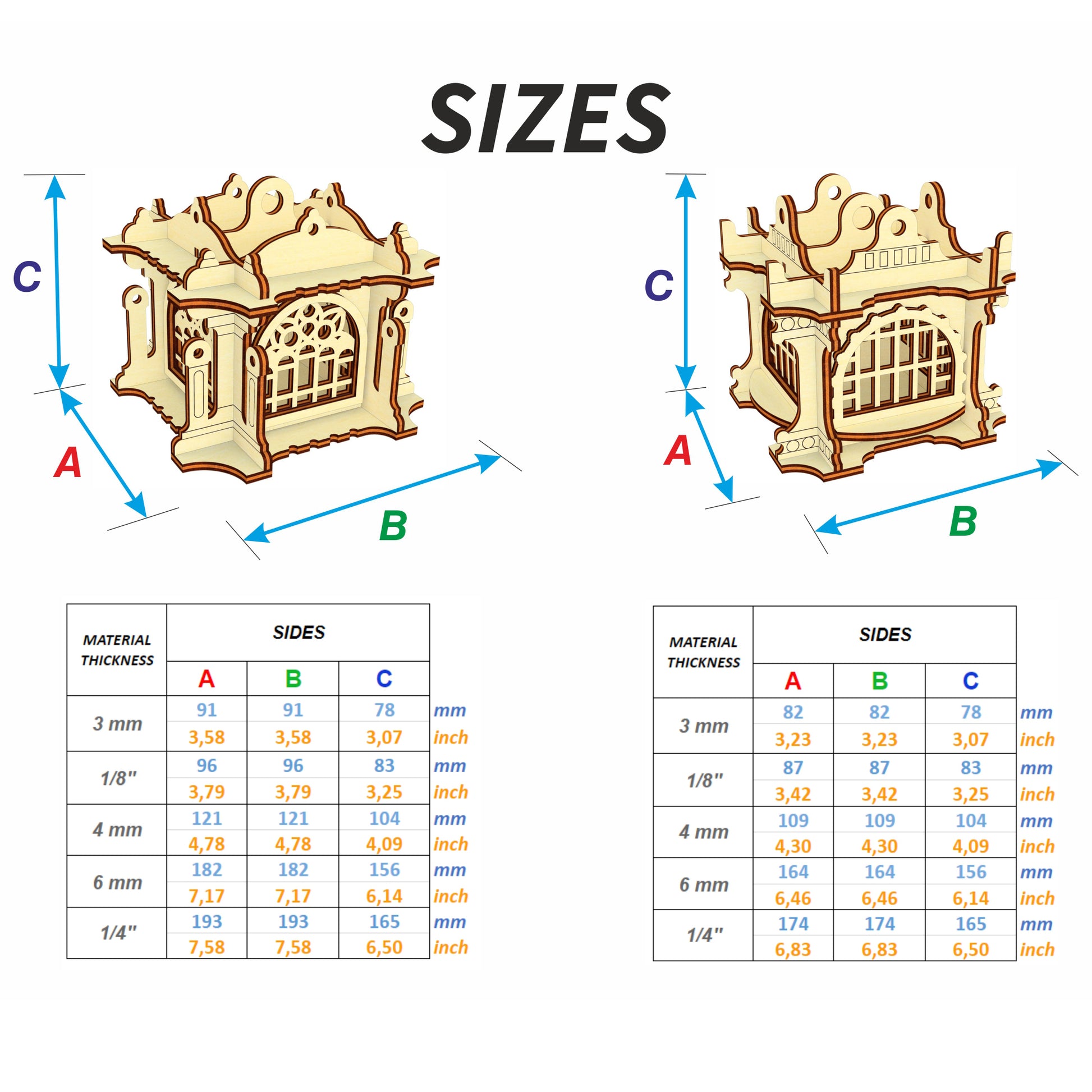 🤏Material thickness (versions of the files): 3mm, 1/8''(3.175mm), 4mm, 6mm, 1/4''(6.35mm)
