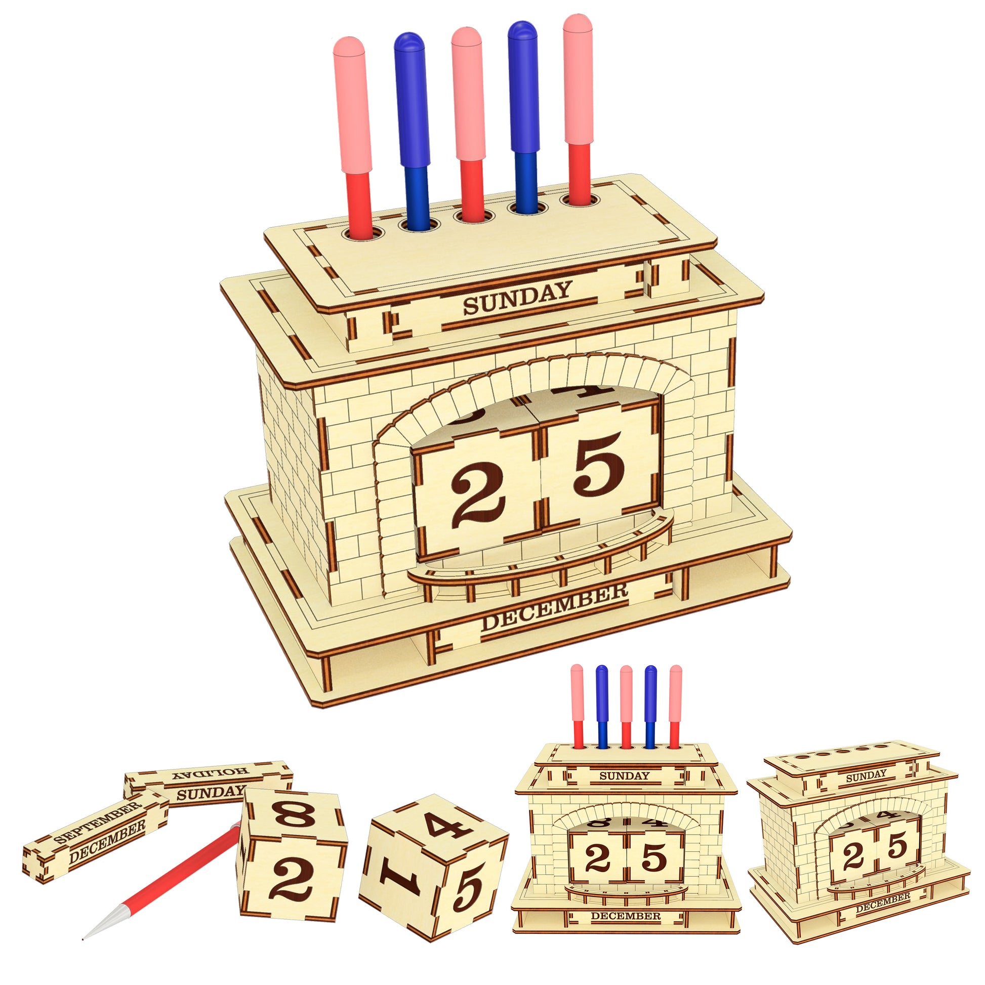 🎨 Laser cut design Perpetual calendar & Pen holder Fireplace🎨