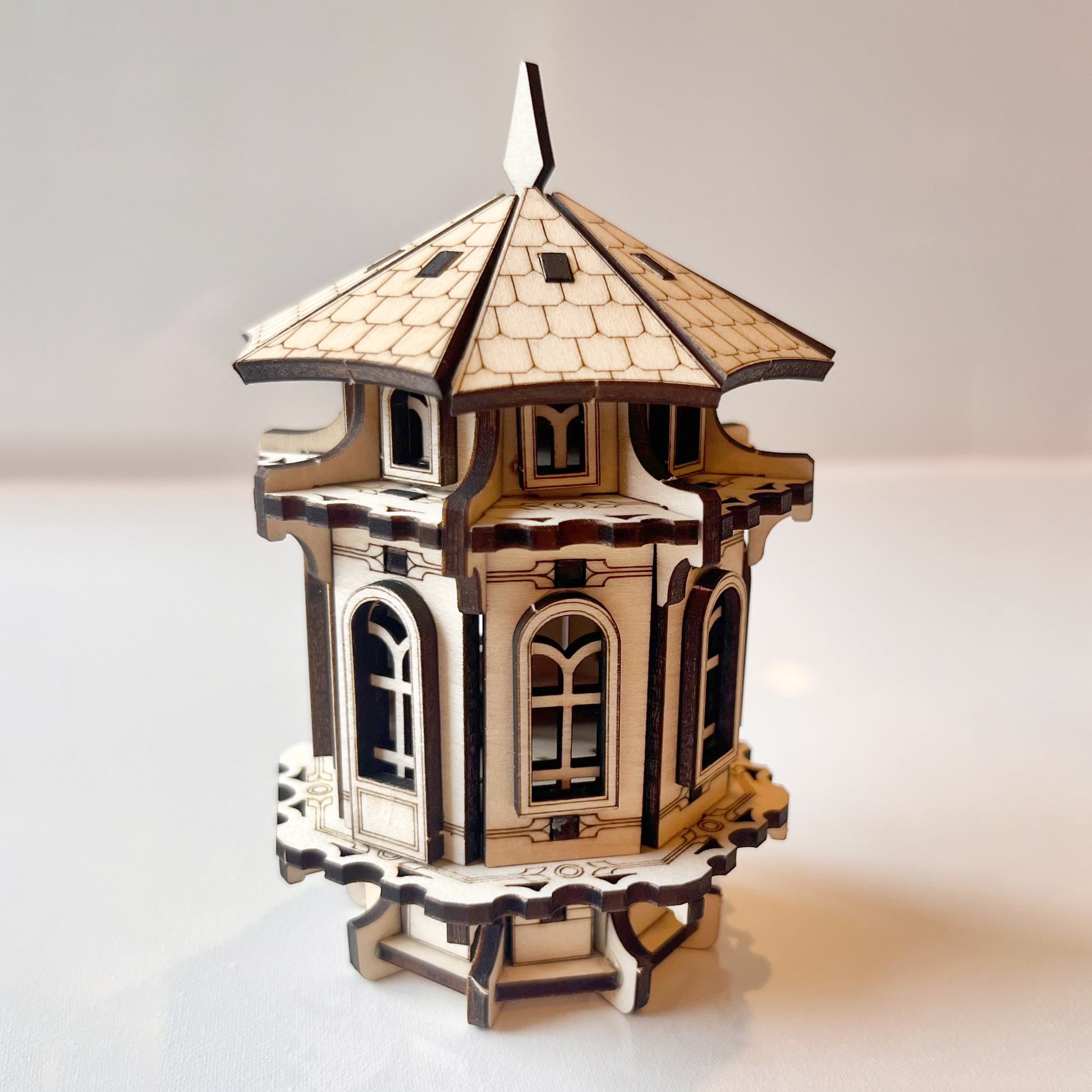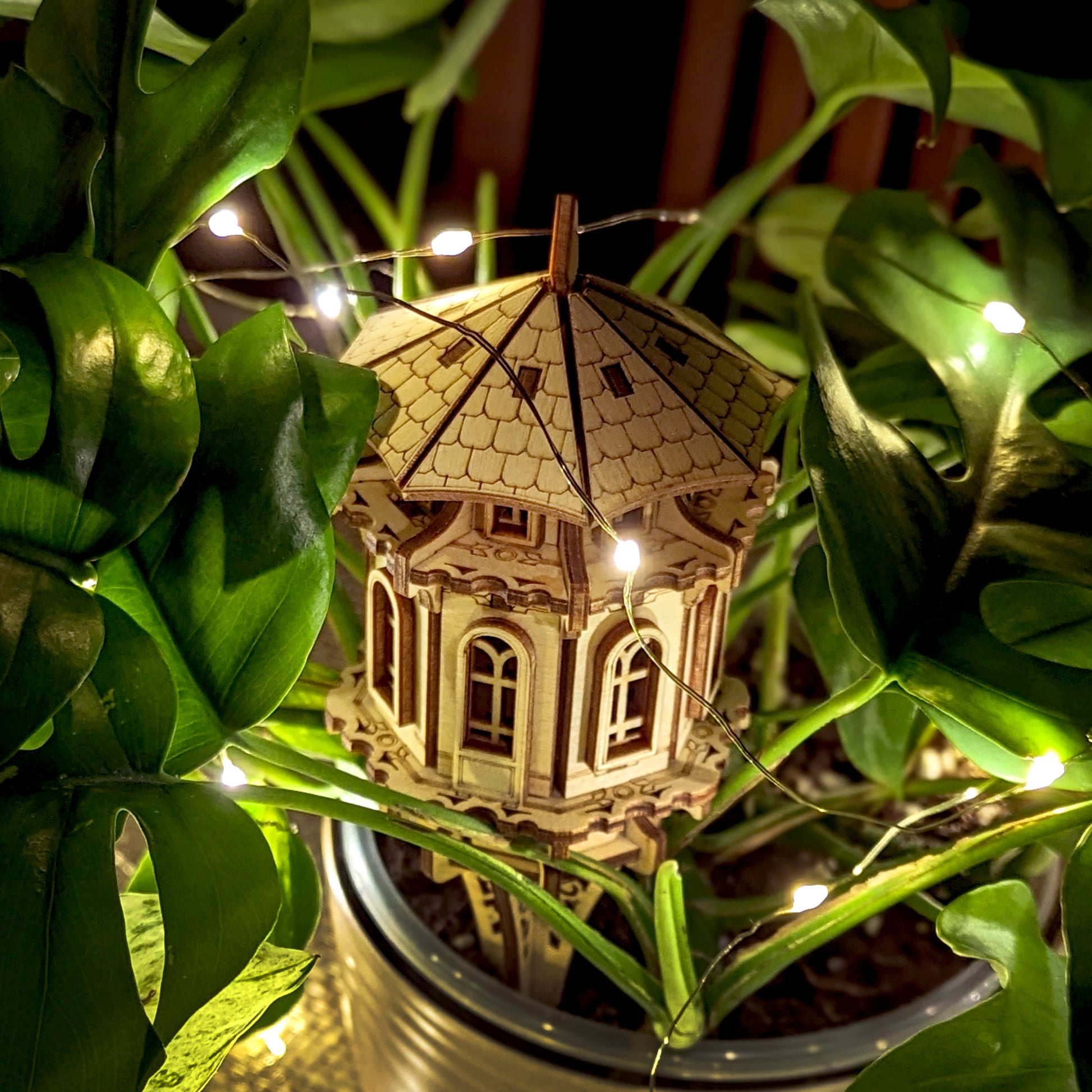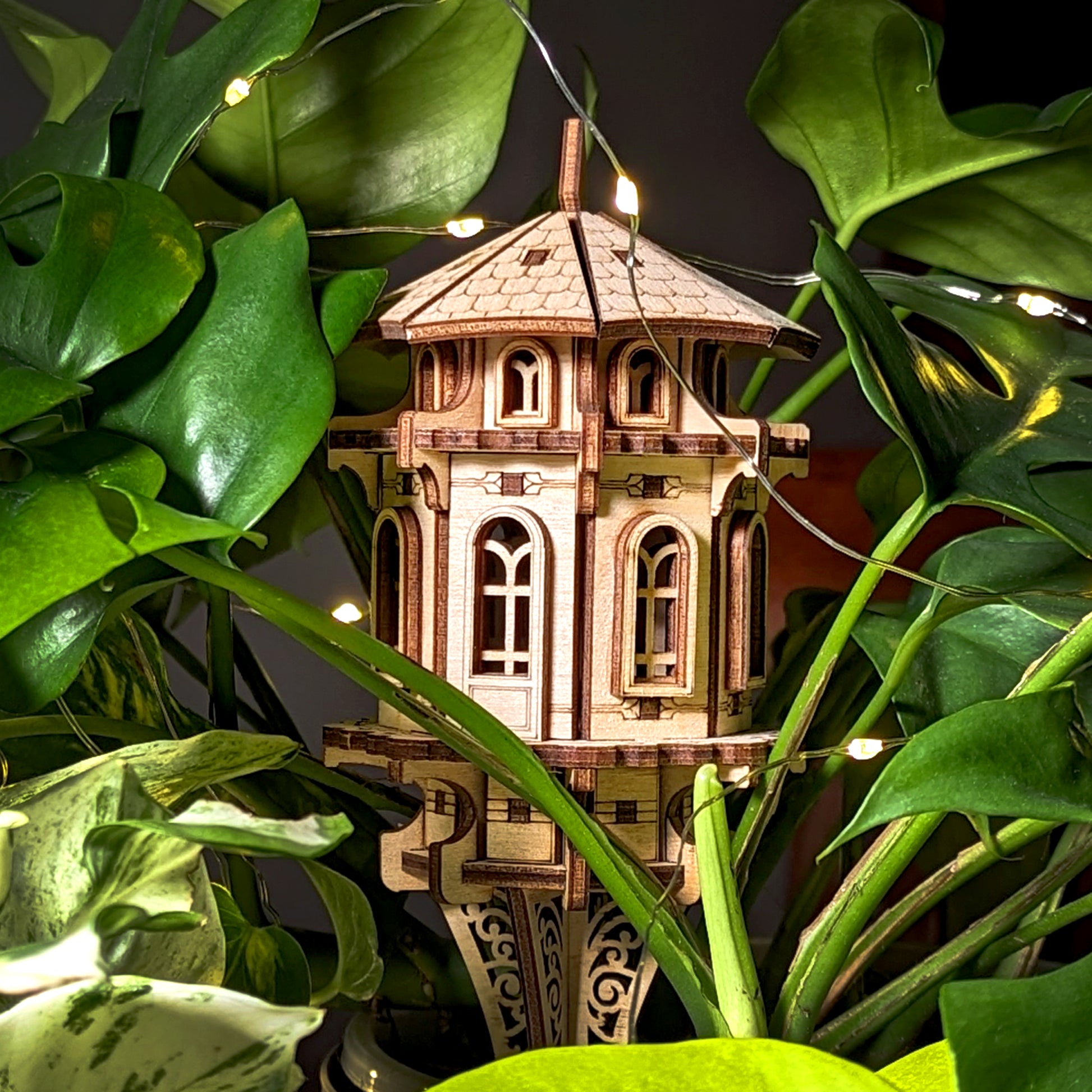 Bring magic to your outdoor space with this Small Garden Tower laser cut file. Perfect for fairy gardens, flower pots, or whimsical yard decor, this detailed design includes all parts to create a charming miniature tower. The digital file is ready for use with Glowforge, xTool, and other popular laser cutters.