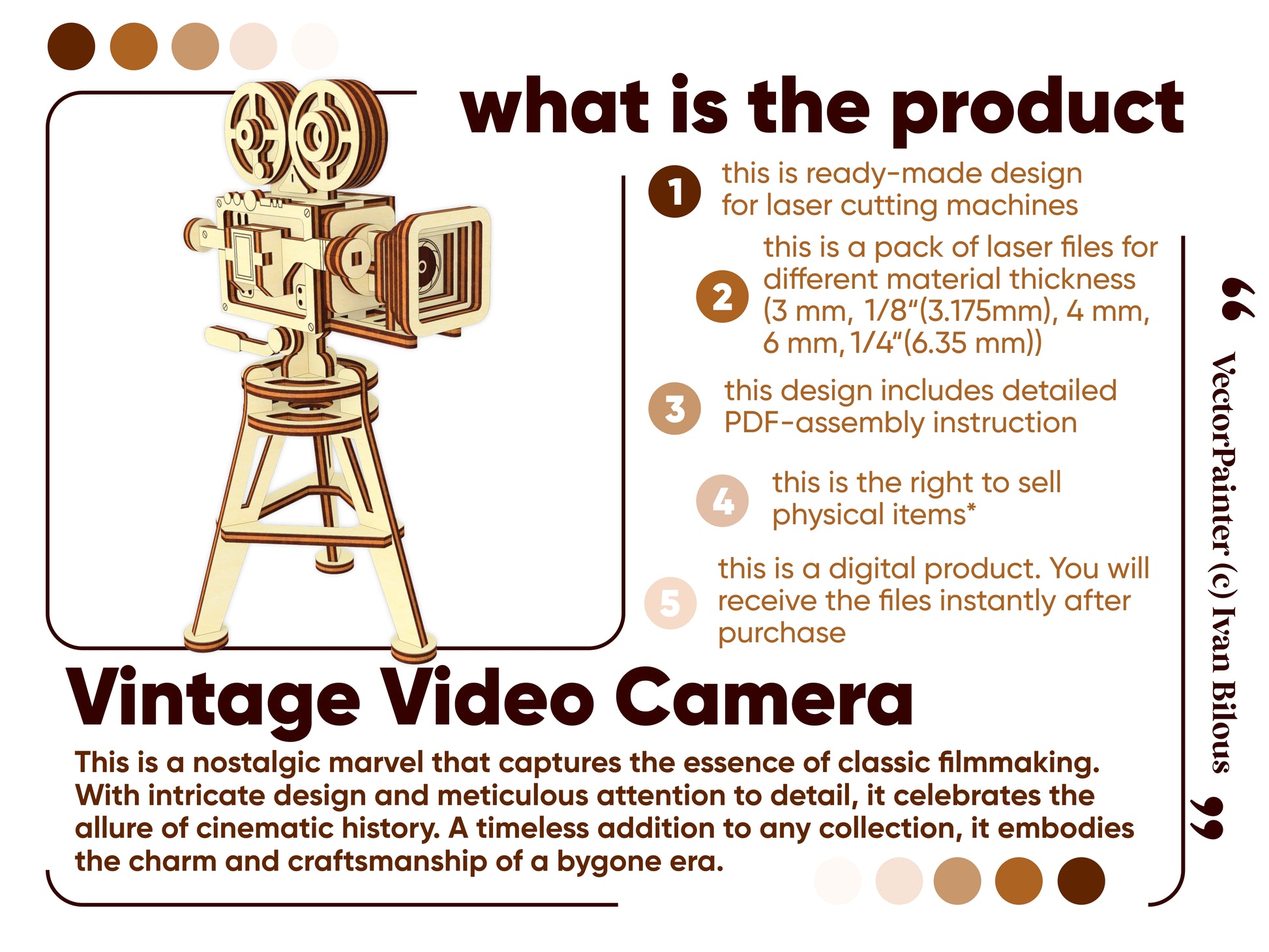 🎨 Laser cut design "Vintage Video Camera" 🎨