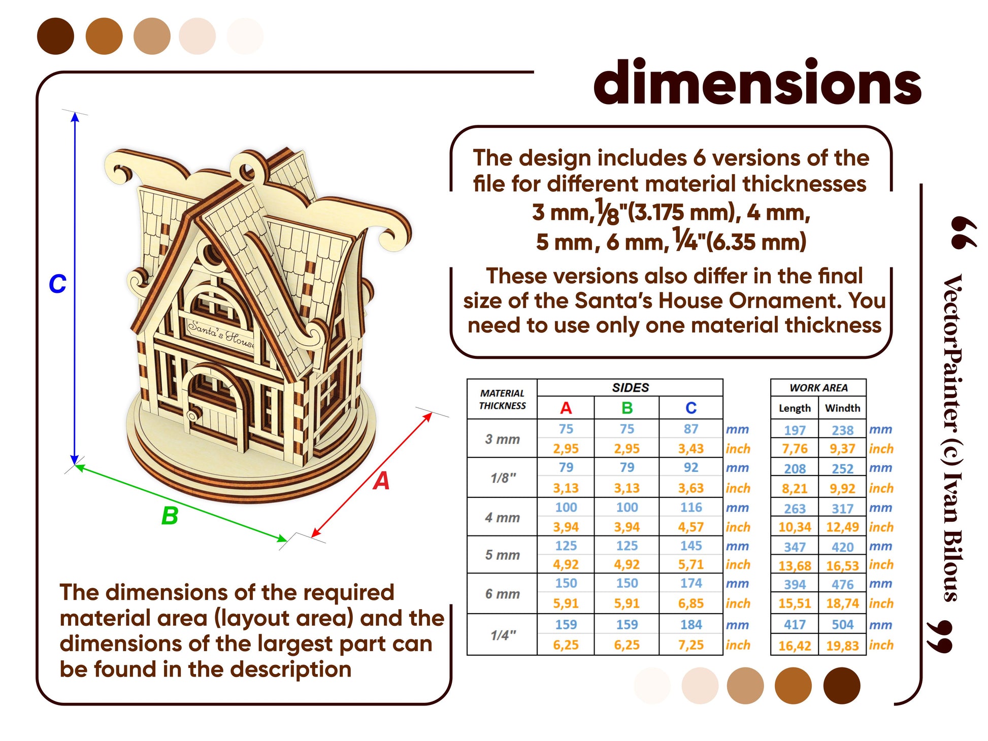 🤏Material thickness (versions of the files): 3 mm, 1/8'' (3.175 mm), 4 mm, 5 mm, 6 mm, 1/4'' (6.35 mm)