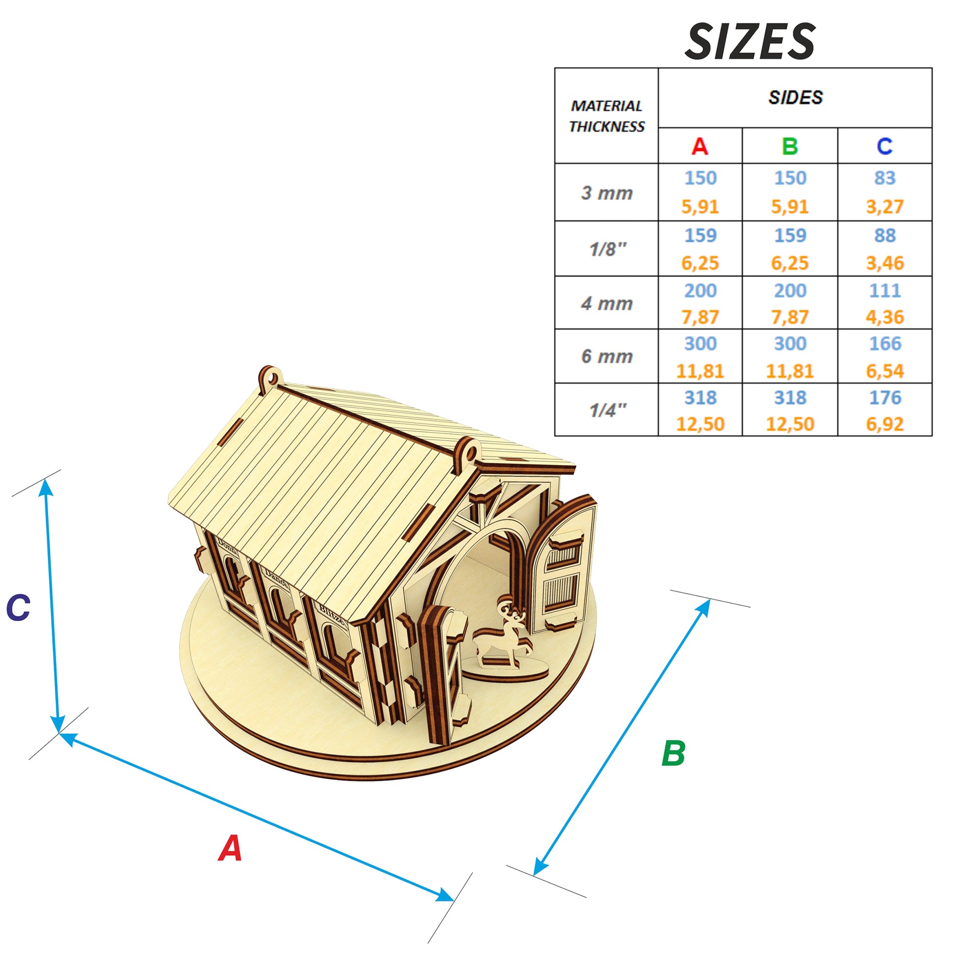 🤏Material thickness (versions of the files): 3mm, 1/8''(3.175mm), 4mm, 6mm, 1/4''(6.35mm)