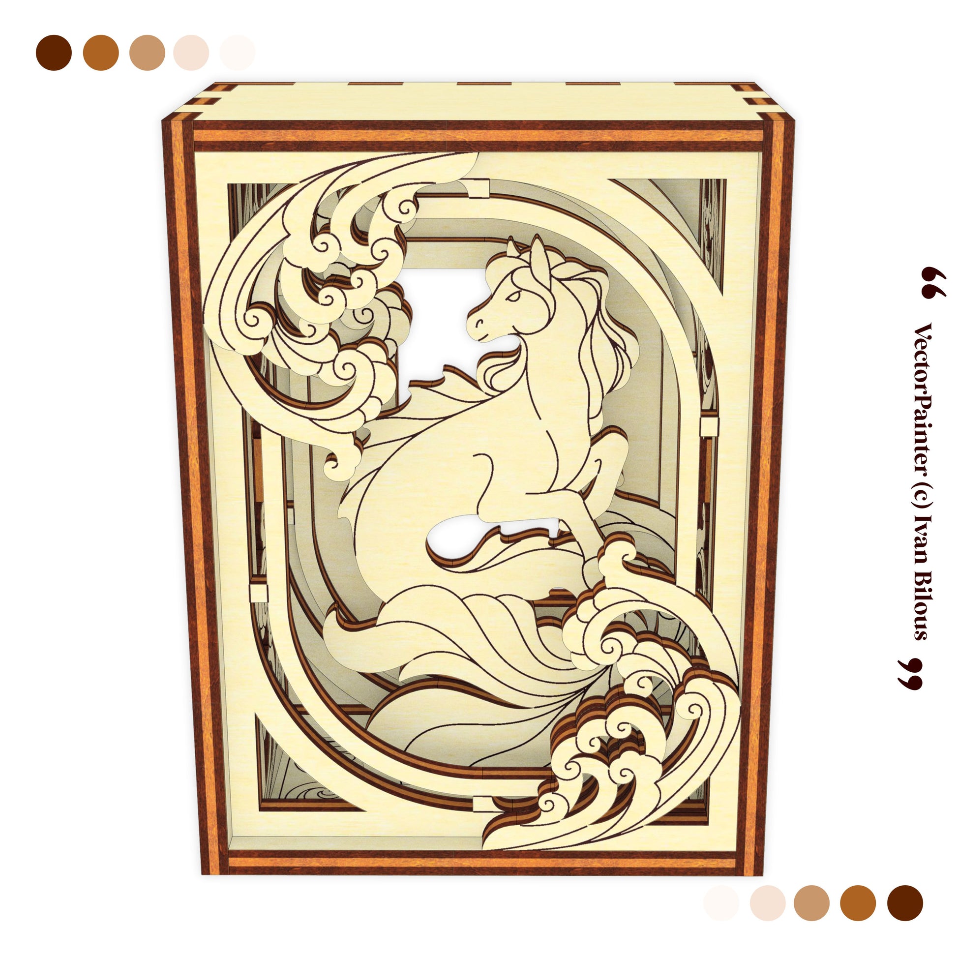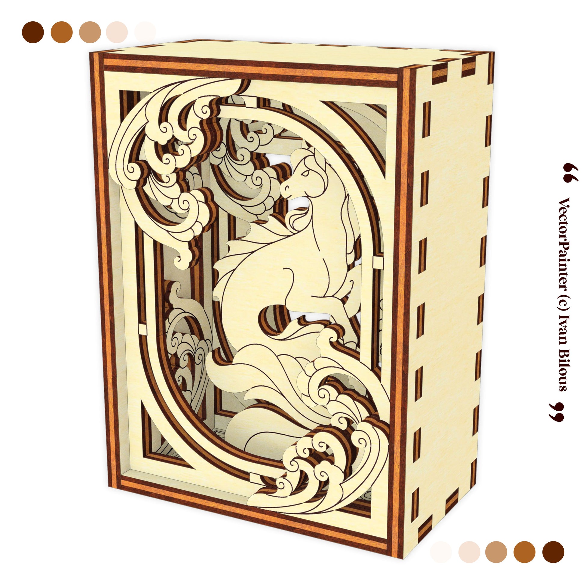 Create a magical decorative piece with this Seahorse Decorative Box Laser Cut File — a layered wooden design featuring an elegant fantasy unicorn surrounded by ornamental details. This SVG digital template allows you to craft a unique shadow box style decor, perfect for fantasy lovers, gifts, or artistic home decoration.