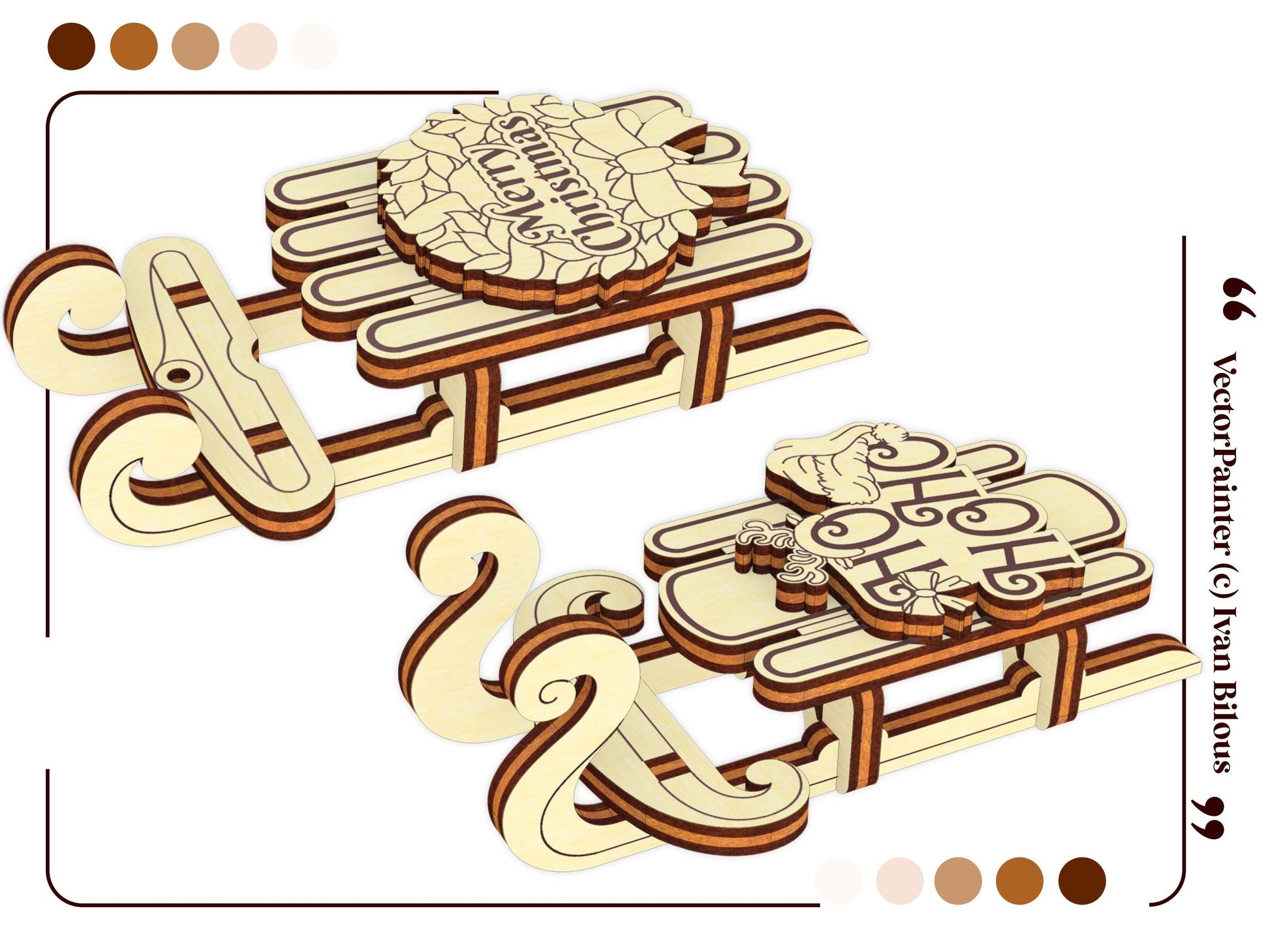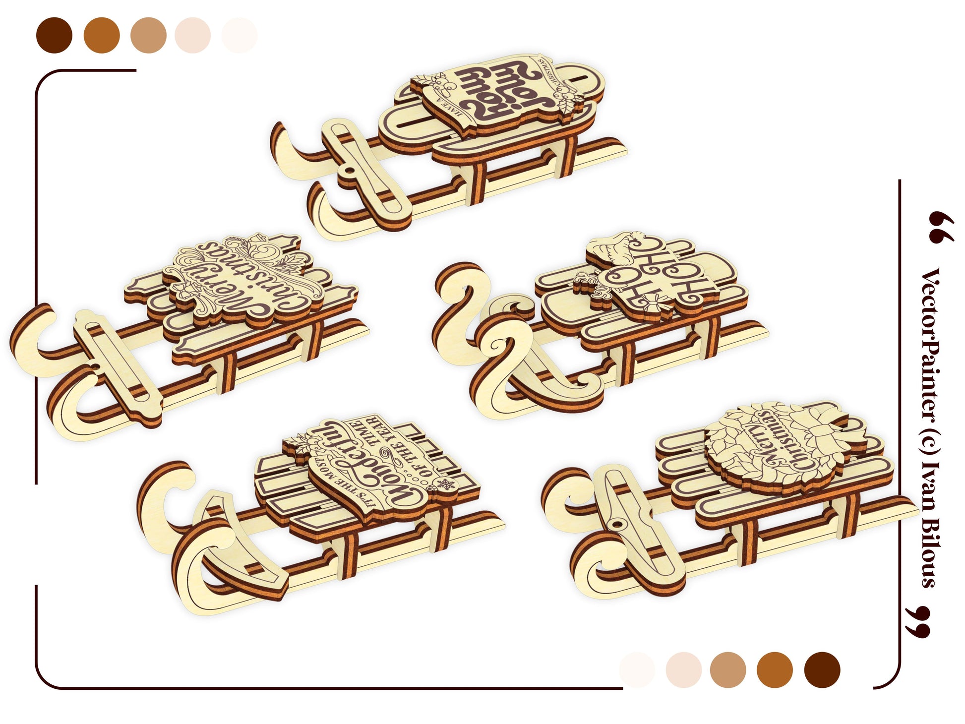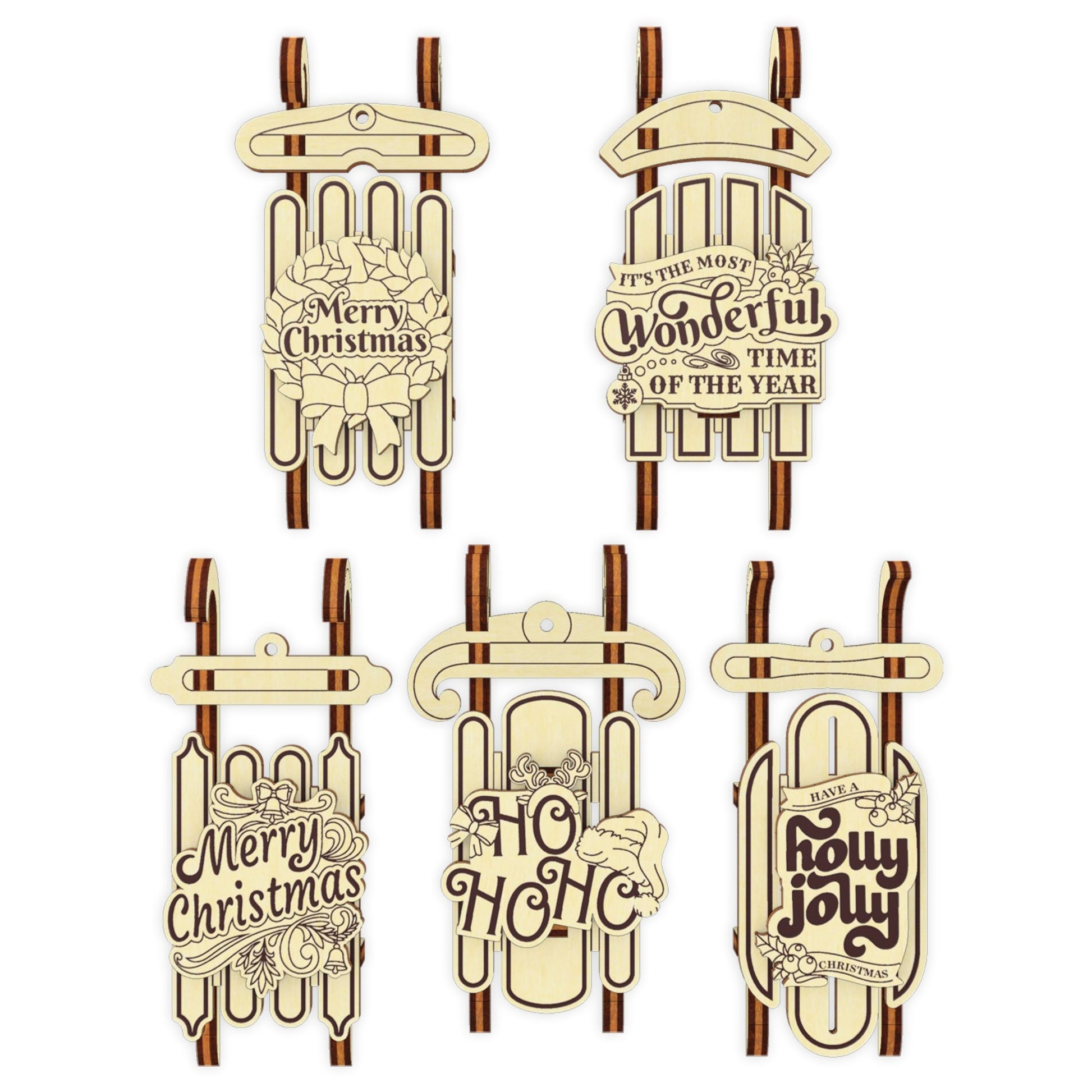🎨 Laser cut design Set of 5 Sled Ornaments 🎨