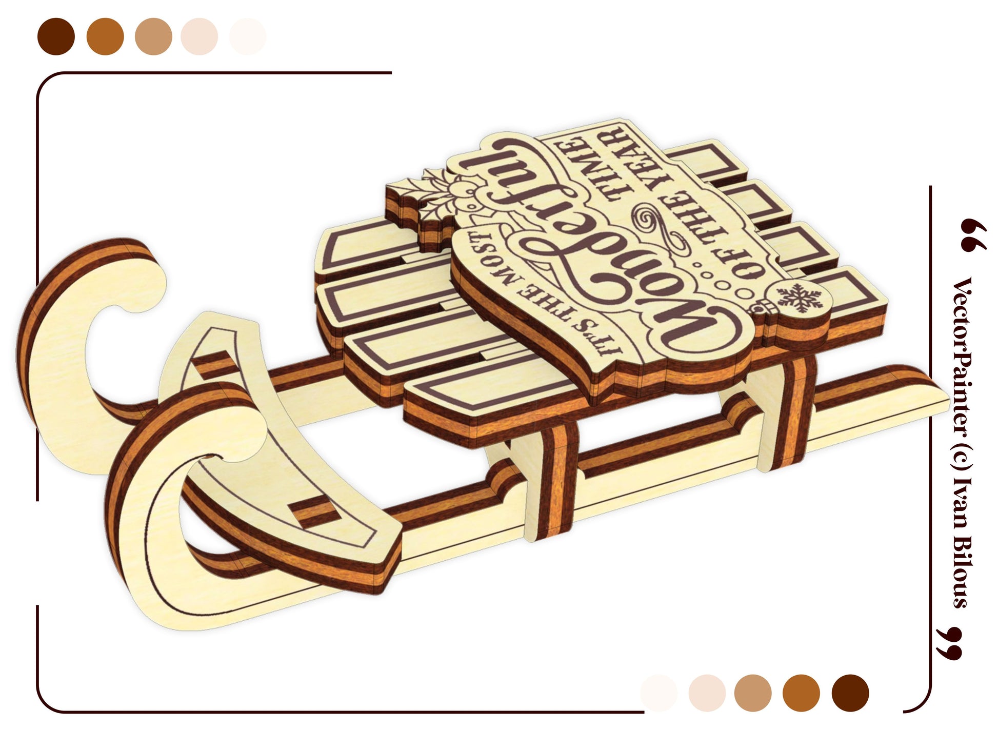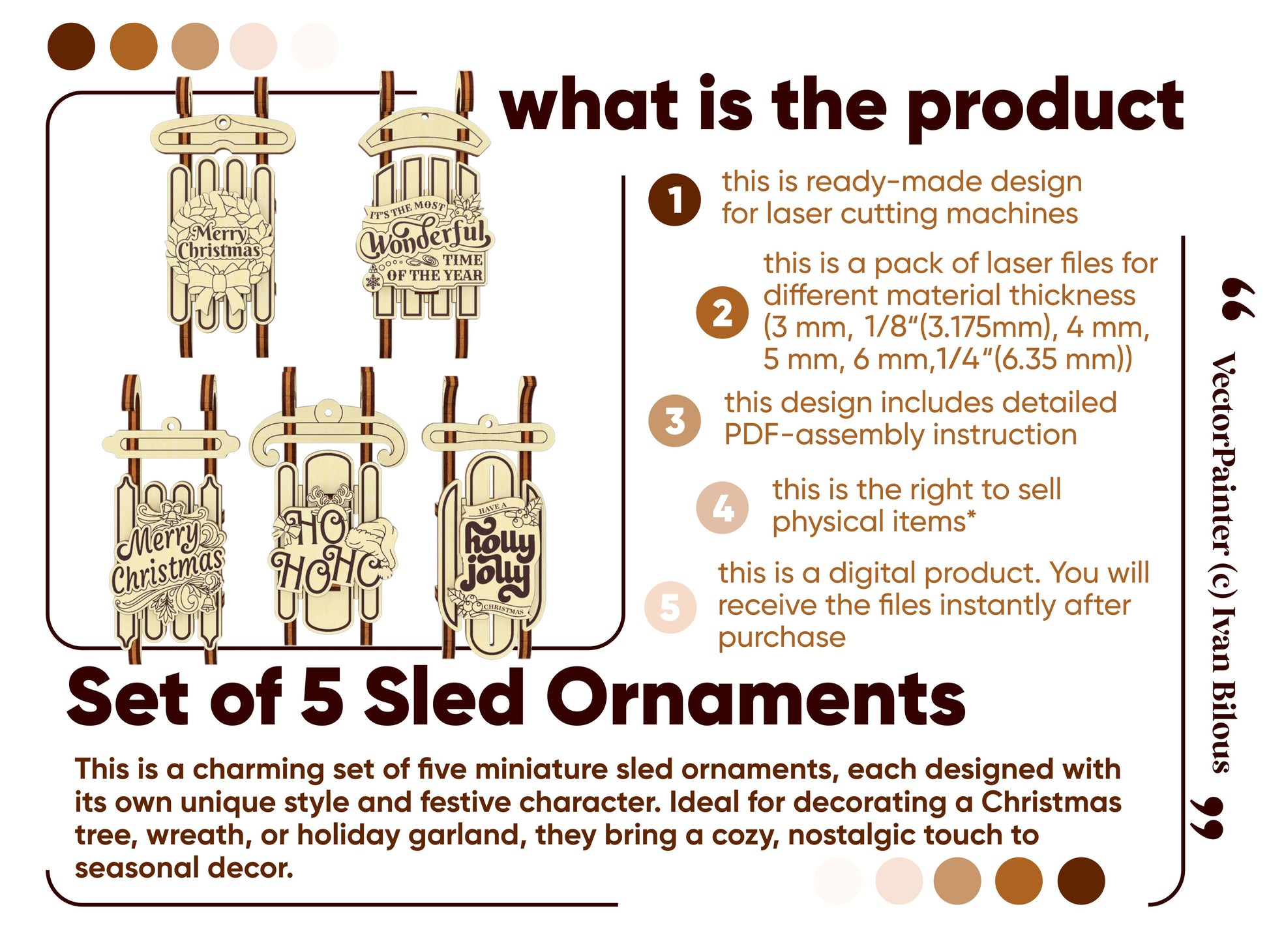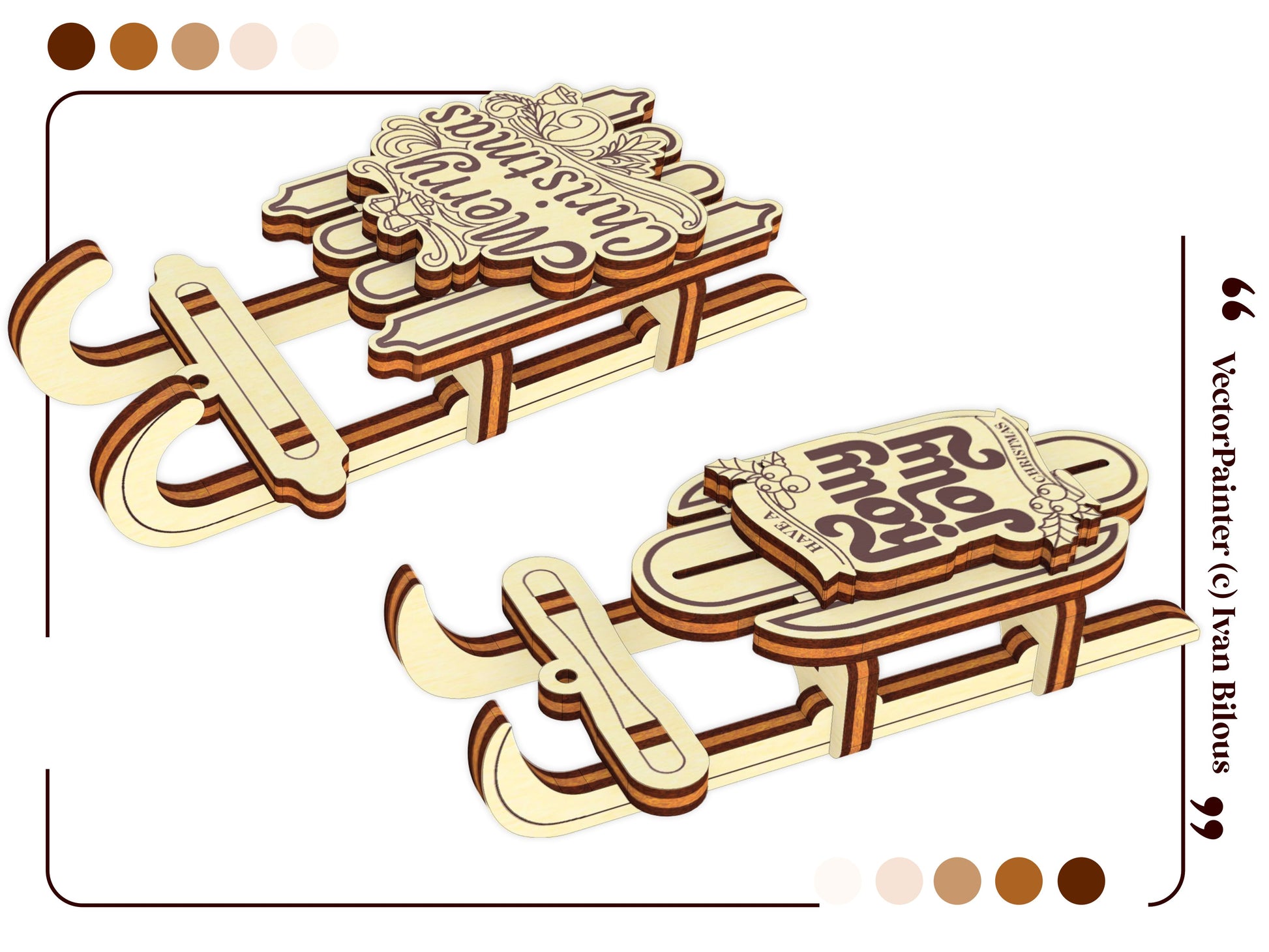 🎨 Laser cut design Set of 5 Sled Ornaments 🎨