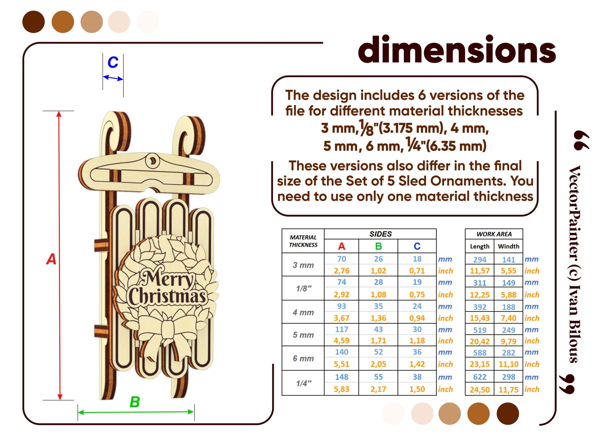 🤏Material thickness (versions of the files): 3 mm, 1/8'' (3.175 mm), 4 mm, 5 mm, 6 mm, 1/4'' (6.35 mm)