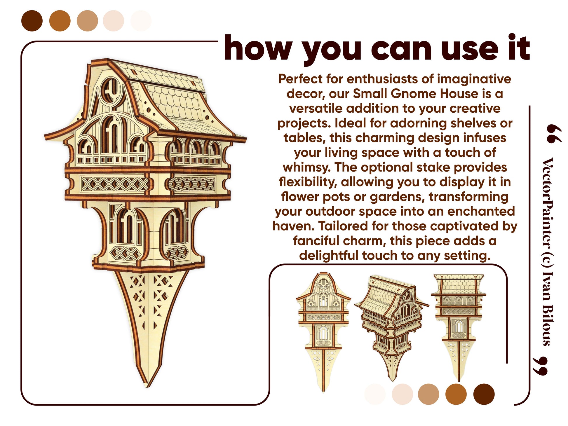 Enchant your outdoor space with our Small Gnome House, a whimsical laser-cut design that adds charm to any garden or fairy tale setting. The intricately crafted house features delightful details, including a curved roof, layered window covers, and decorative elements that evoke a sense of fantasy. With the option for a stake, you can securely place this miniature house in your garden, creating a focal point that invites imaginative play. The precision-cut design ensures clean edges and easy assembly, making it a delightful addition for DIY enthusiasts. Download the design files and bring a touch of magic to your garden with the Small Gnome House.