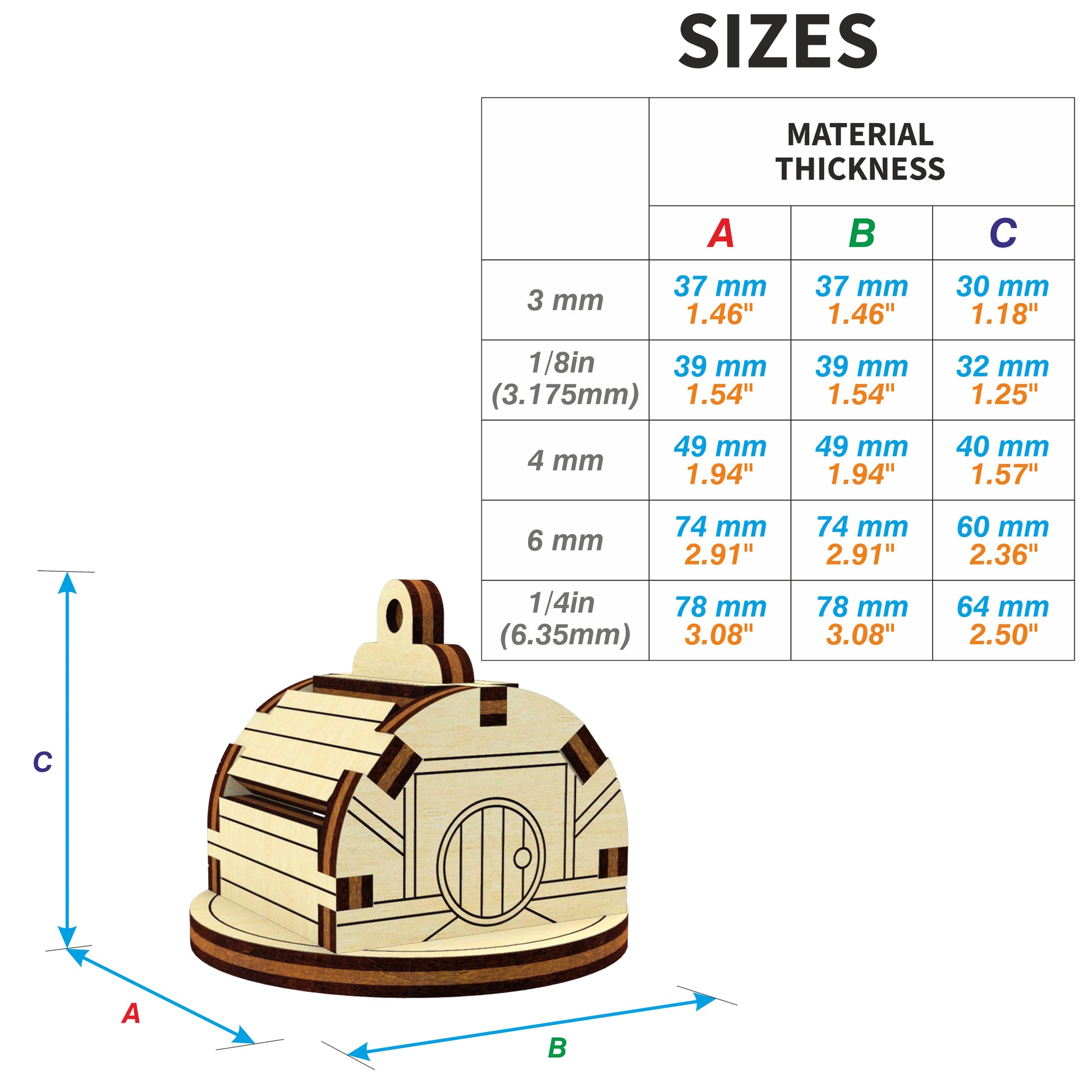 🤏Material thickness (versions of the files): 3mm, 1/8''(3.175mm), 4mm, 6mm, 1/4''(6.35mm)