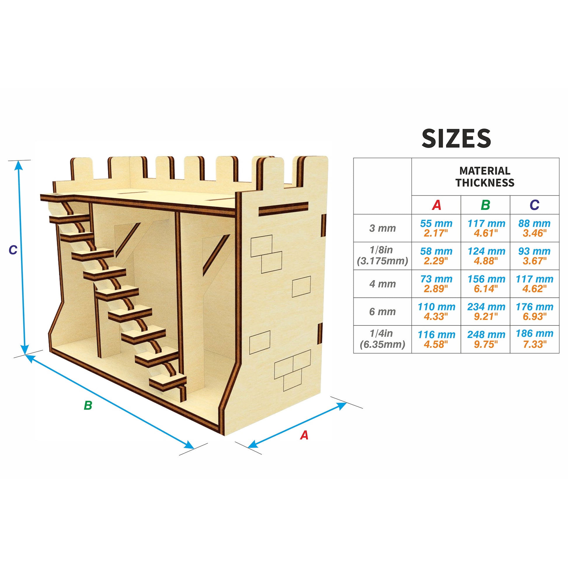 🤏Material thickness (versions of the files): 3mm, 1/8''(3.175mm), 4mm, 6mm, 1/4''(6.35mm)