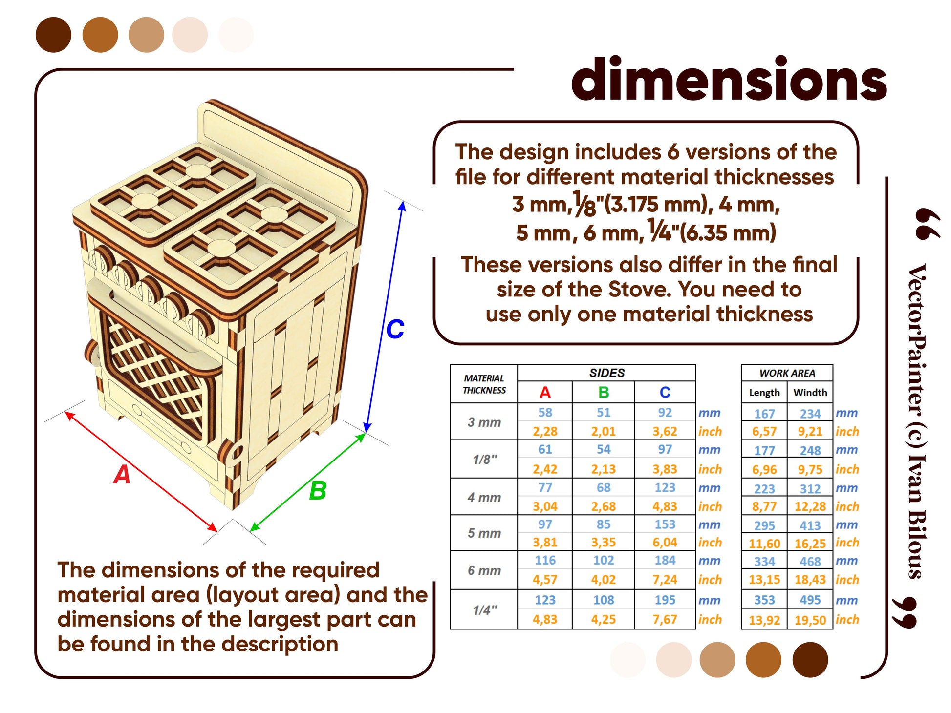🤏Material thickness (versions of the files): 3 mm, 1/8'' (3.175 mm), 4 mm, 5 mm, 6 mm, 1/4'' (6.35 mm)