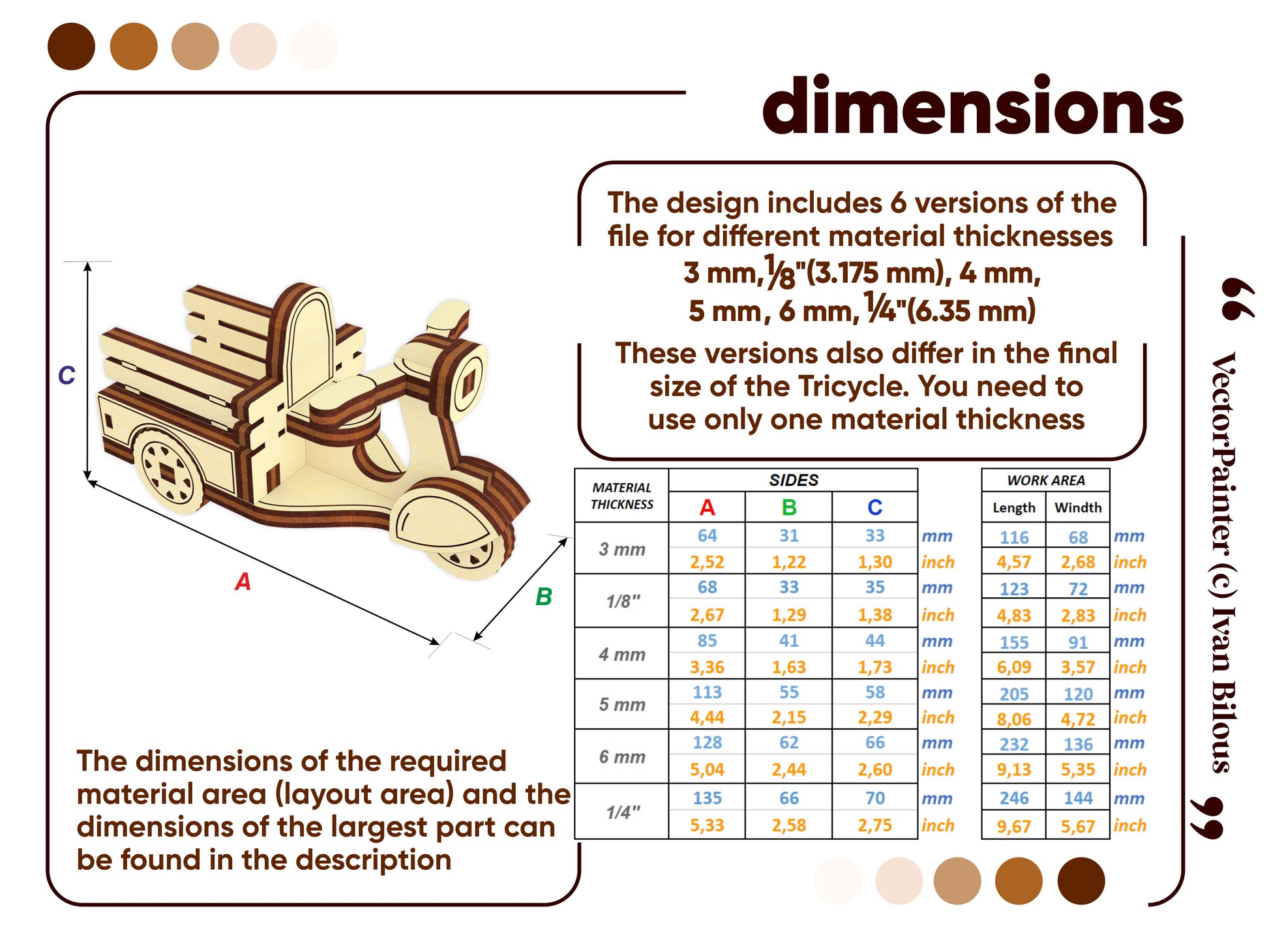 🤏Material thickness (versions of the files): 3 mm, 1/8'' (3.175 mm), 4 mm, 5 mm, 6 mm, 1/4'' (6.35 mm)