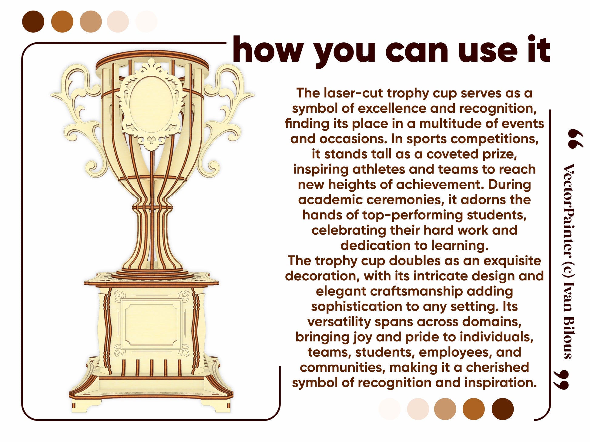 Introducing the Laser-Cut Trophy Cup – a stunning ready-made project crafted with precision and elegance. This plywood design features intricate detailing, making it a regal and customizable centerpiece for celebrating achievements in style. The Laser-Cut Trophy Cup comes with a versatile SVG, DXF, CDR, AI plan, embodying excellence and recognition for outstanding accomplishments in various domains.