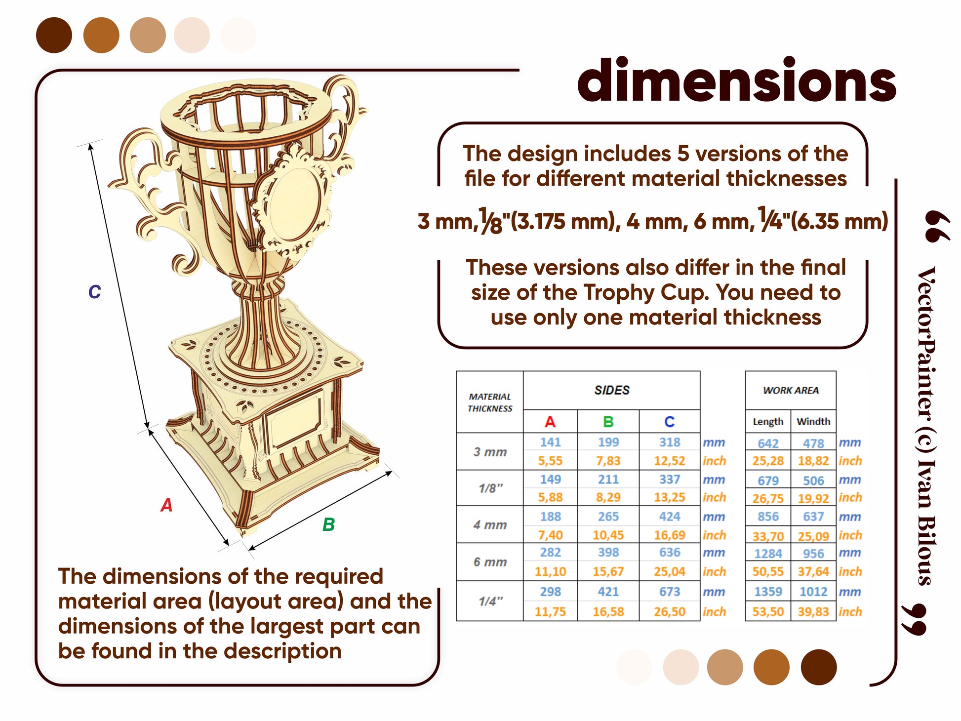 🤏Material thickness (versions of the files): 3mm, 1/8''(3.175mm), 4mm, 6mm, 1/4''(6.35mm)