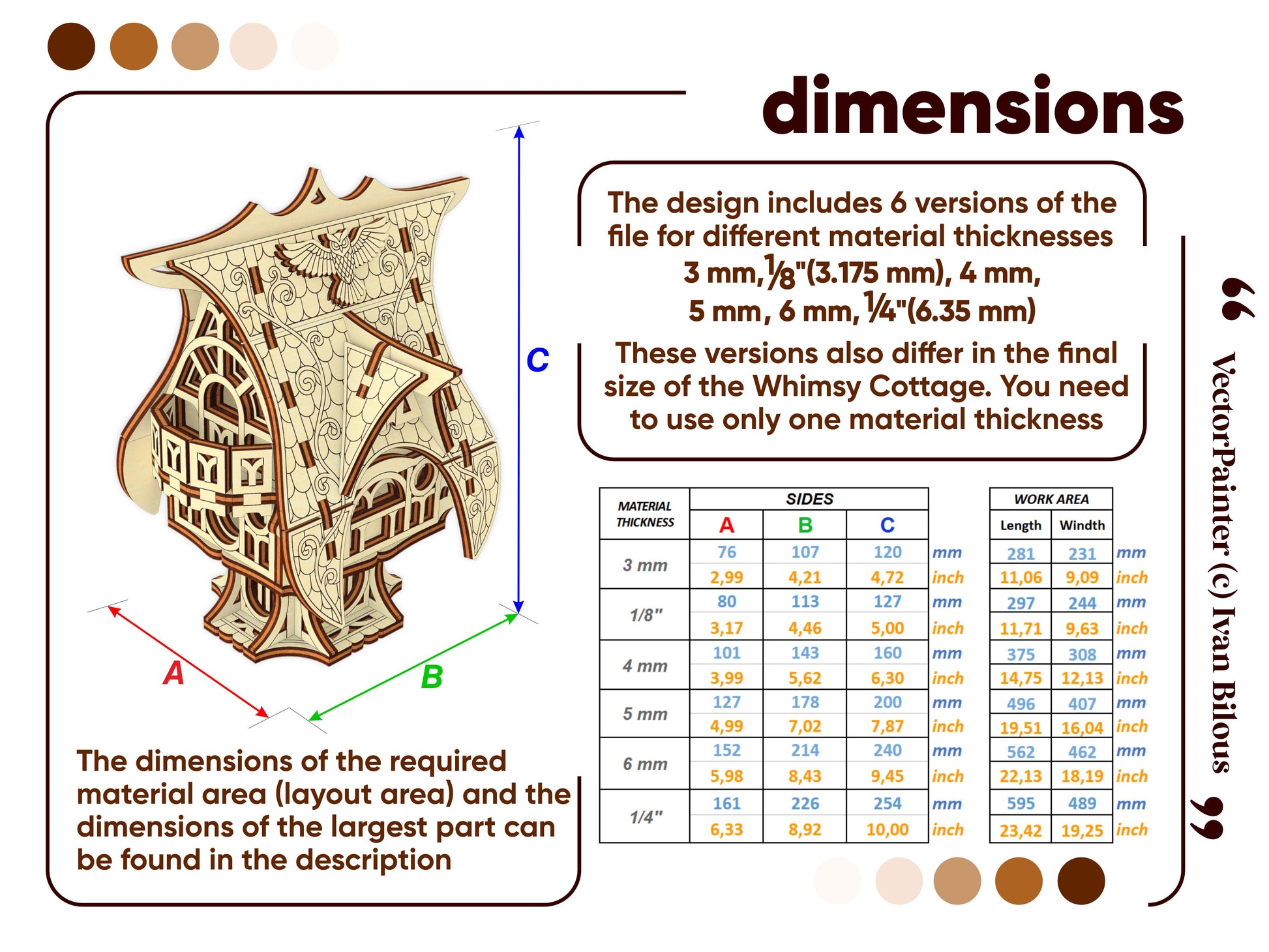 🤏Material thickness (versions of the files): 3 mm, 1/8'' (3.175 mm), 4 mm, 5 mm, 6 mm, 1/4'' (6.35 mm)
