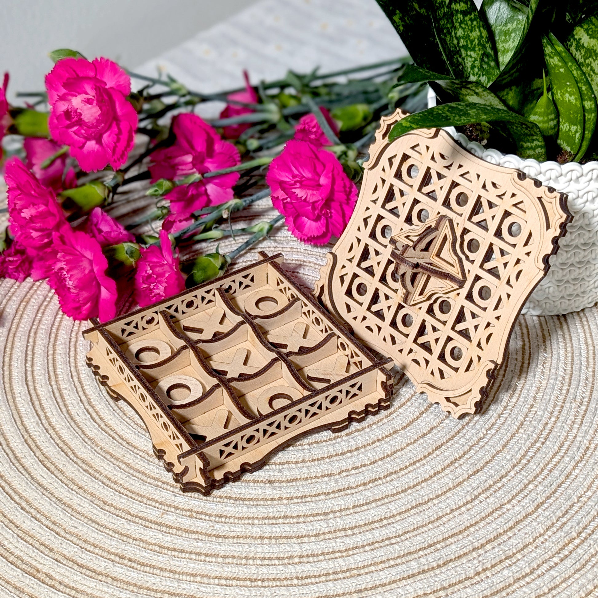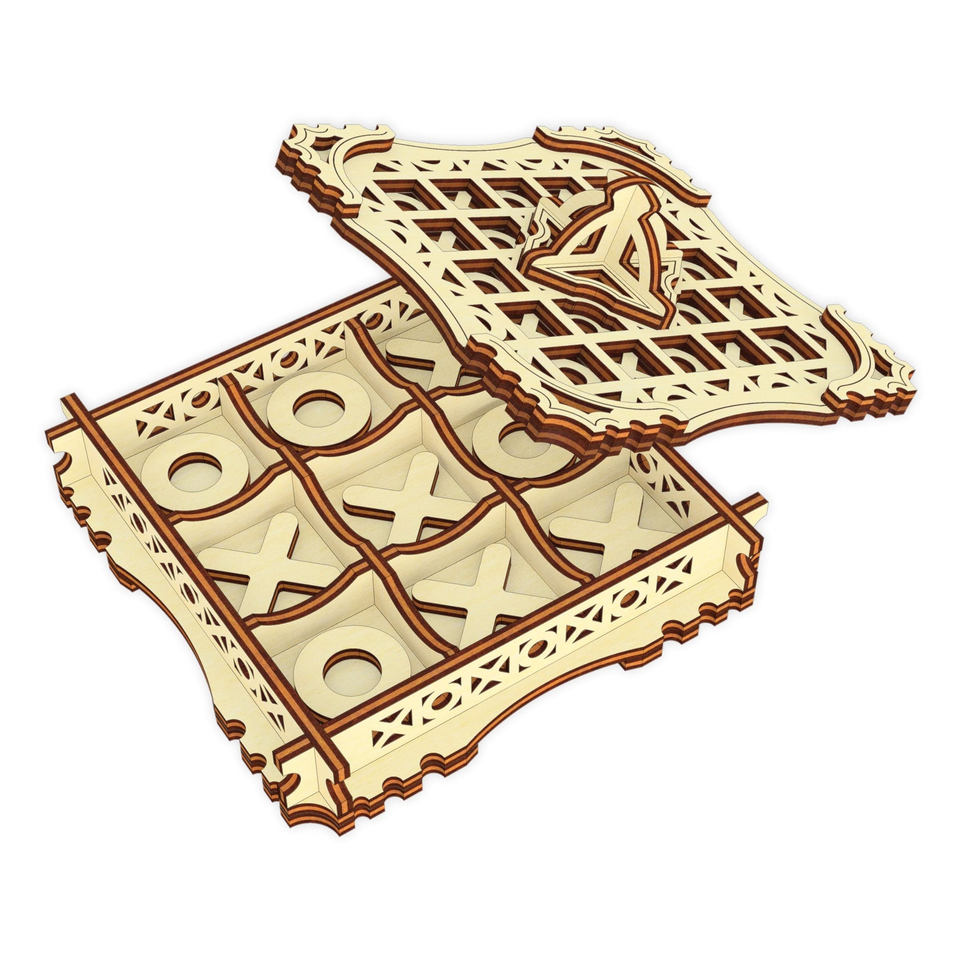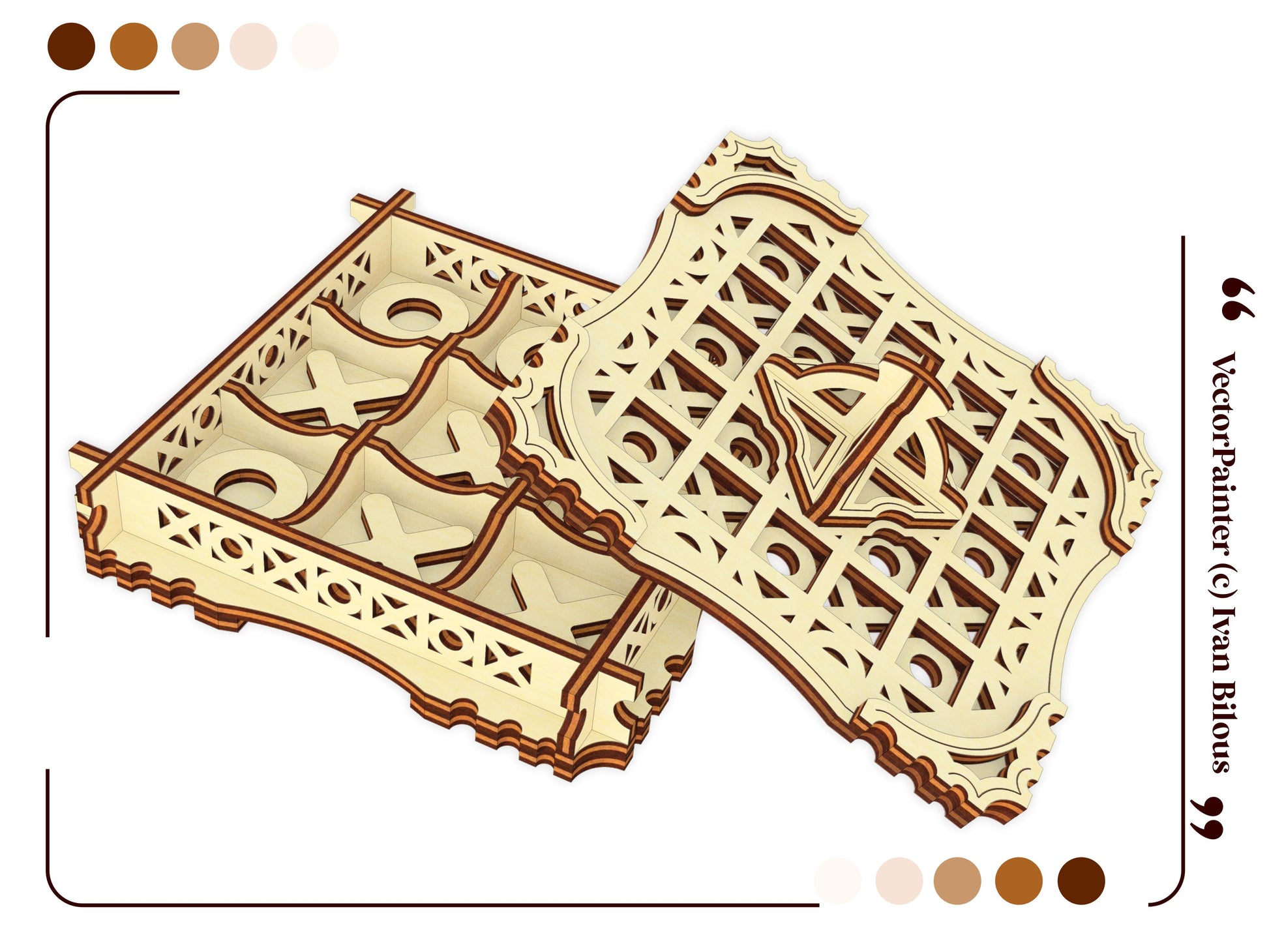 This Laser Cut X and O game with a Box is a stylish and functional addition to any game collection. The removable lid doubles as a beautifully designed game board, combining elegance with practicality. Inside, neatly organized compartments provide storage for the game pieces, keeping everything secure when not in use. With precision laser-cut details, this box offers a seamless blend of entertainment and organization, making it perfect for both play and display. Whether for family game nights or as a unique gift, this X and O box adds a touch of sophistication to a classic game. Download the design files and create your own version today!