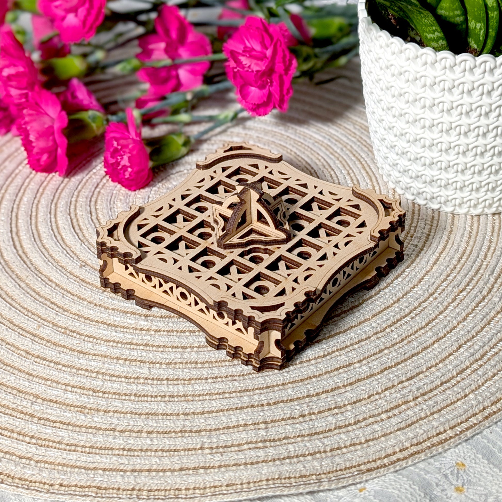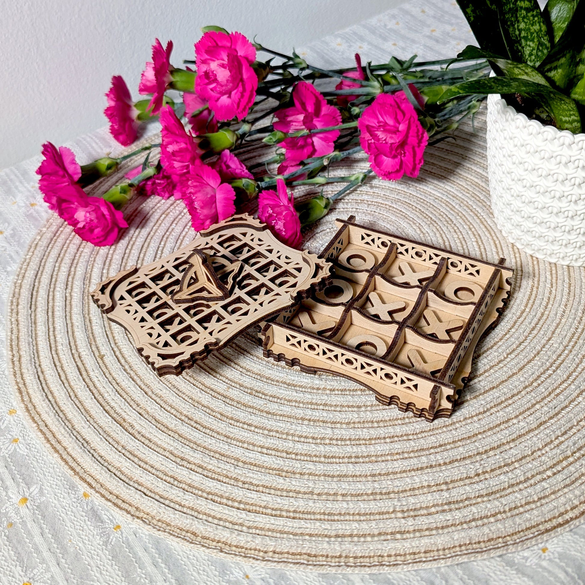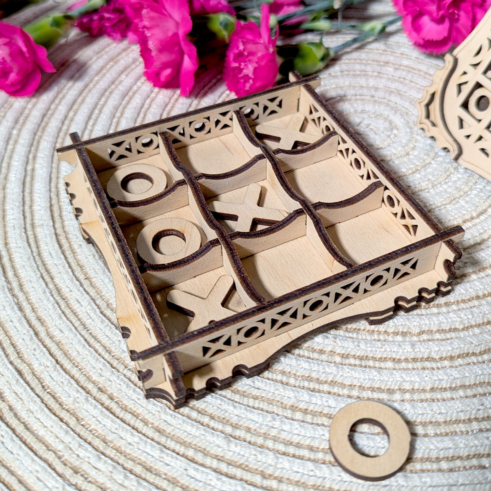 This Laser Cut X and O game with a Box is a stylish and functional addition to any game collection. The removable lid doubles as a beautifully designed game board, combining elegance with practicality. Inside, neatly organized compartments provide storage for the game pieces, keeping everything secure when not in use. With precision laser-cut details, this box offers a seamless blend of entertainment and organization, making it perfect for both play and display. Whether for family game nights or as a unique gift, this X and O box adds a touch of sophistication to a classic game. Download the design files and create your own version today!