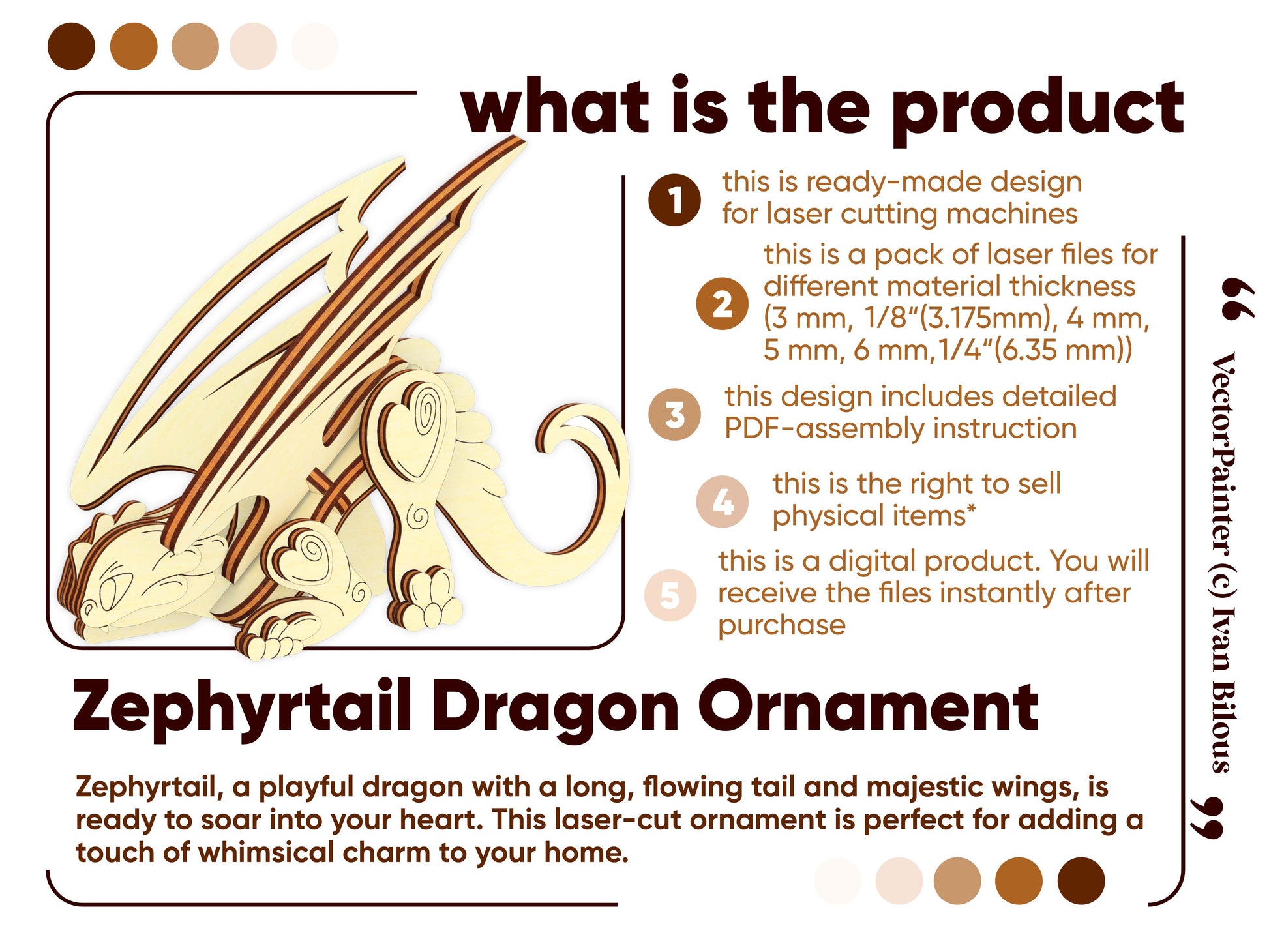 🎨 Laser cut design Zephyrtail Dragon Ornament 🎨