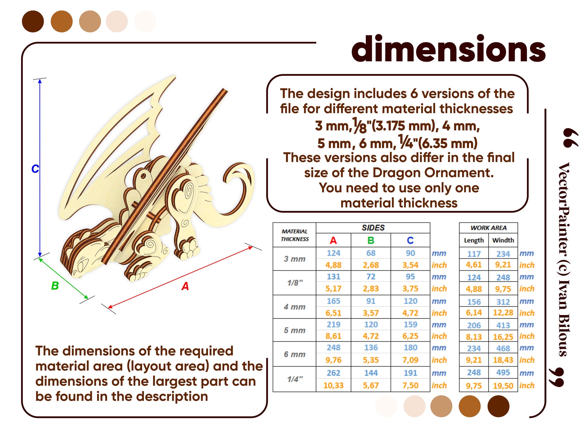 🤏Material thickness (versions of the files): 3 mm, 1/8''(3.175 mm), 4 mm, 5 mm, 6 mm, 1/4'' (6.35 mm)